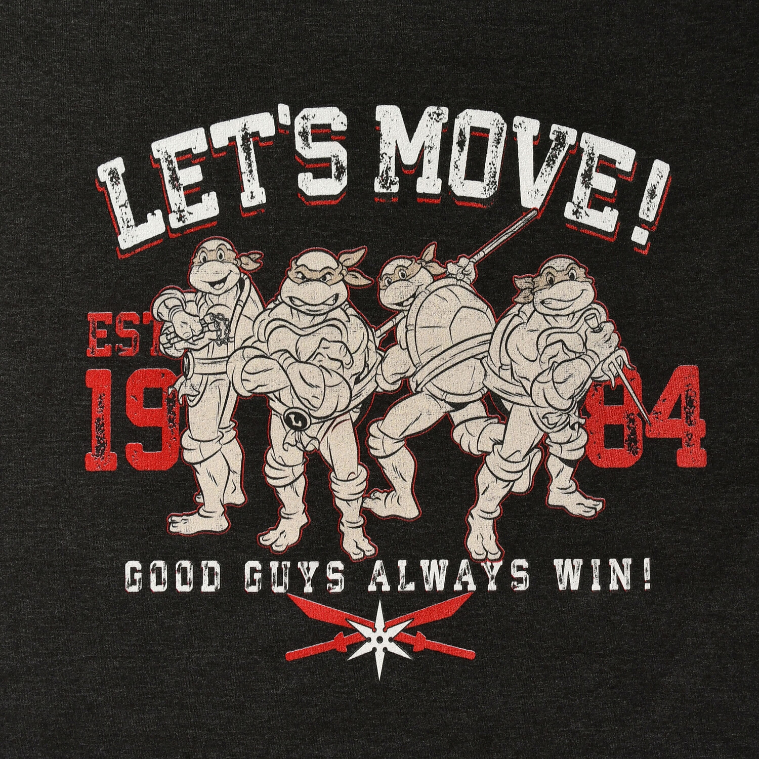 - Готовы подвигаться с самыми крутыми черепахами в городе? В этой официально лицензированной футболке Teenage Mutant Ninja Turtles вы точно будете готовы к действию! На крупноформатном мотиве изображены четыре героя во всей их красе, а надпись «Давайте двигаться!» Надпись – это явное объявление войны. Прямой крой и классический круглый вырез создают повседневный образ и удобную посадку. Рубашка пестрого темно-серого цвета также привлекает внимание. В этой футболке вы не только проявите свой интерес к Черепашкам Ниндзя, но и продемонстрируете свое чувство стиля. Так чего же вы ждете? Наденьте свою новую любимую рубашку и покажите миру, что вы готовы двигаться вперед!