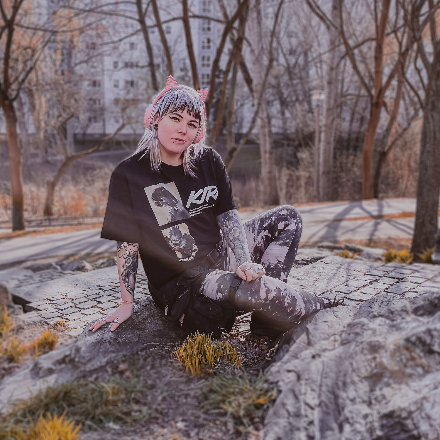 - Мотив: большой формат, Лайт Ягами, он же Кира, с цитатой и синигами Рюком