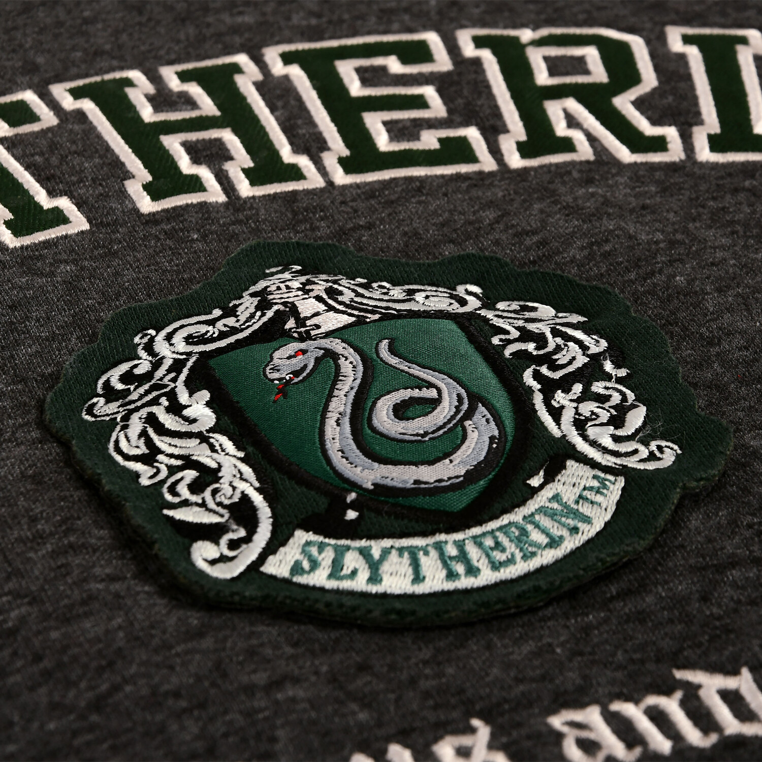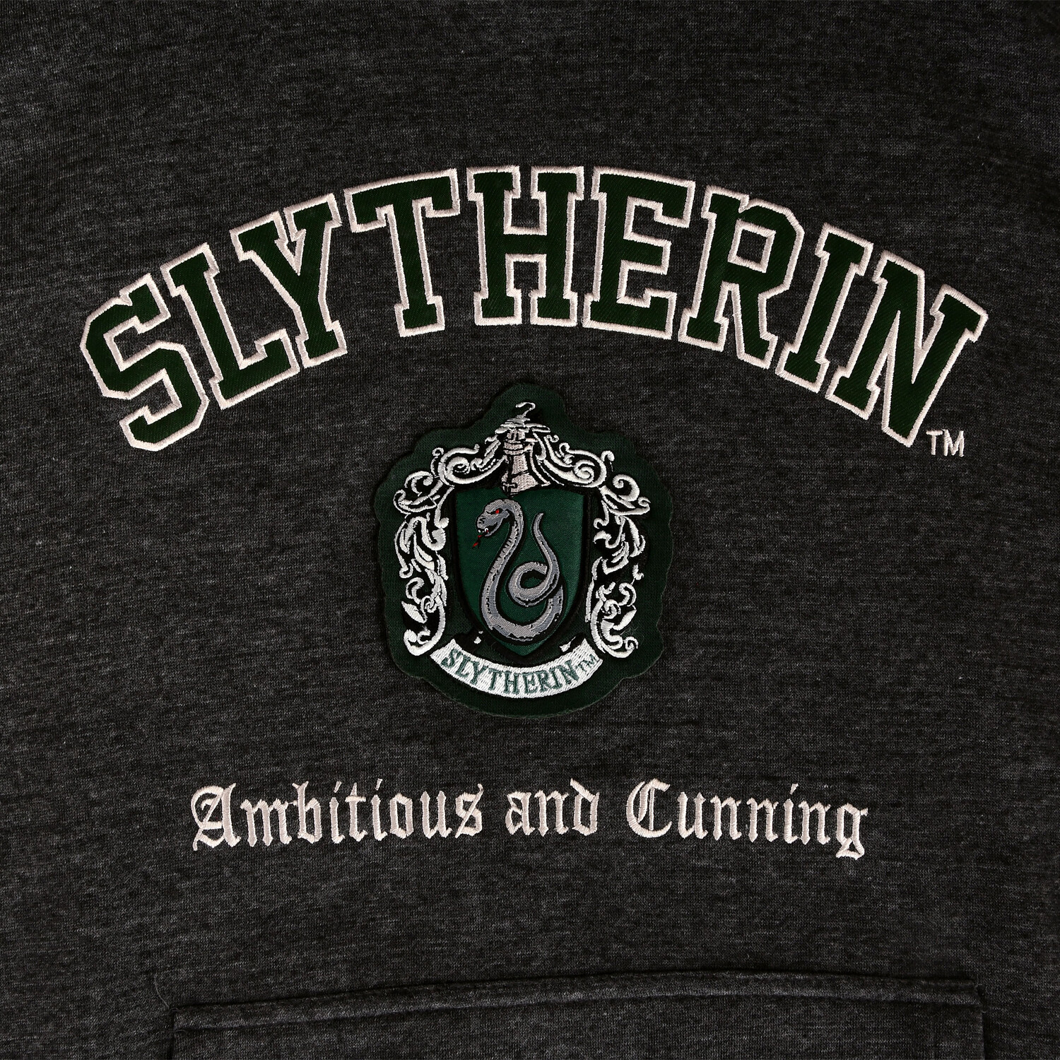 - крупноформатная контрастная по цвету вышивка «Слизерин» и «Амбициозный и хитрый»