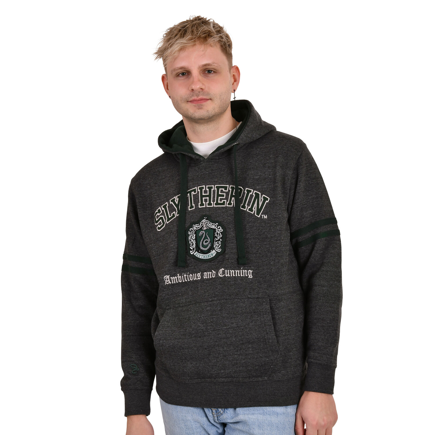 - Готовы показать свою темную сторону и нести клеймо зла? С гордостью демонстрируйте герб и надписи Слизерина в этой официально лицензированной толстовке с капюшоном «Гарри Поттер». Эта толстовка из теплого и мягкого материала с начесом на внутренней стороне идеально подходит для холодных дней в Большом зале или на тренировках по квиддичу. Благодаря фиксированным манжетам и переднему карману для рук вам не придется беспокоиться о том, что палочка или ингредиенты для зелий выскользнут. А с капюшоном на шнурке вы сможете продемонстрировать свою загадочную сторону. Наденьте эту серо-зеленую толстовку и покажите всем, что слизеринцы — это больше, чем просто темная магия. Инструкция по уходу: Можно стирать при 30°C!