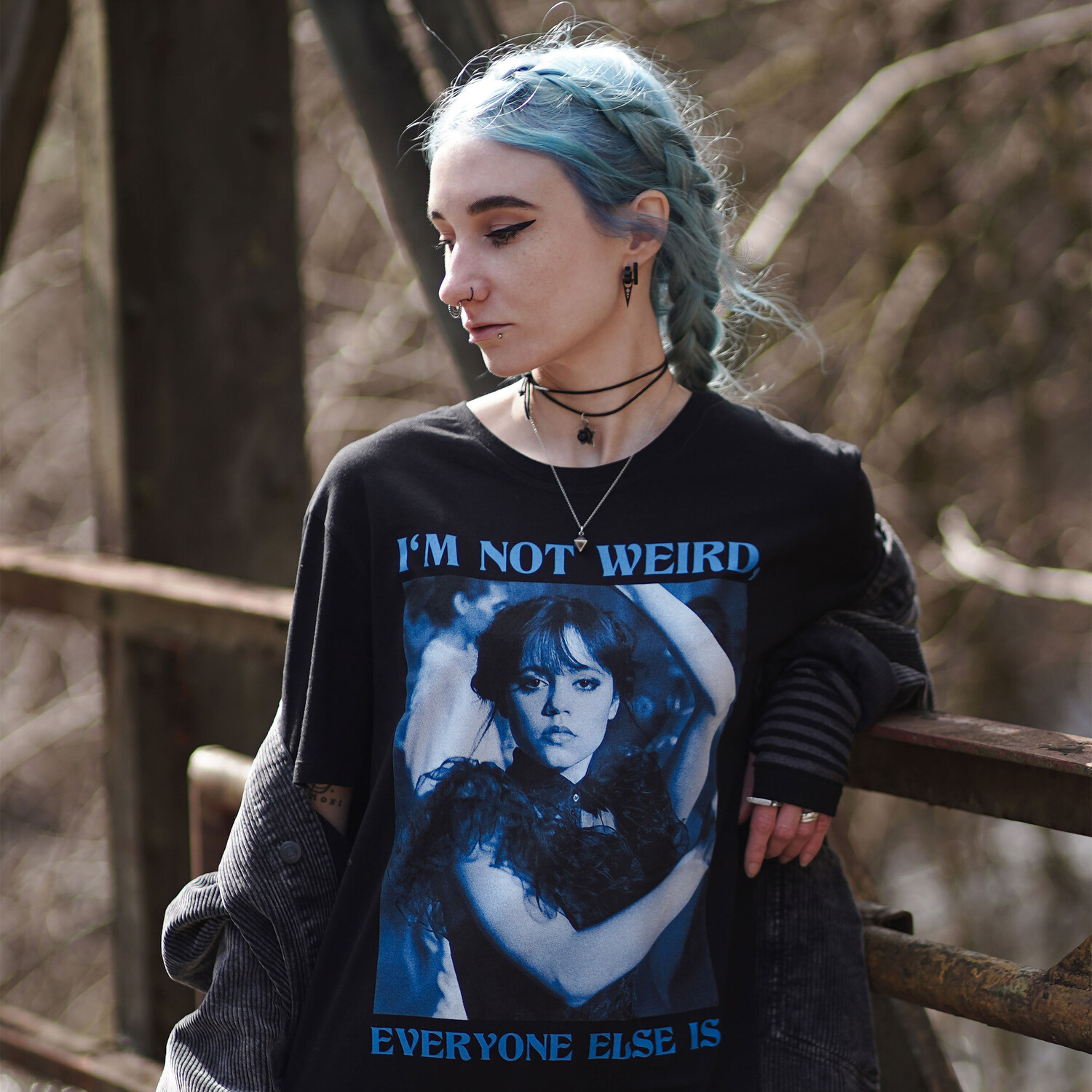 - Bist Готовы ли вы дать волю своему внутреннему нонконформисту? С этой официально лицензированной черной футболкой Wednesday вы сможете сделать именно это! На лицевой стороне изображен культовый плакат «Среда», дополненный словами «Я не странный, как и все остальные». Яркое заявление для всех, кто хочет выделиться из толпы. Эта рубашка не только привлекает внимание, но и очень удобна благодаря прямому крою и круглому вырезу. И самое главное: купив эту рубашку, вы становитесь частью эксклюзивного сообщества по средам. Покажите миру, что вы особенный и гордитесь этим. Инструкция по уходу: Можно стирать при 30°C!