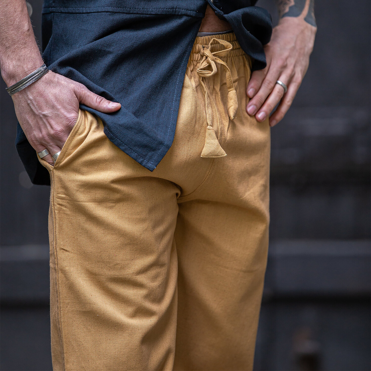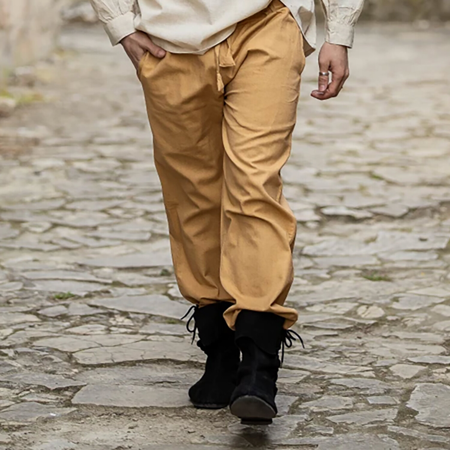 - Средневековые брюки Veit коричневого цвета — классический и удобный выбор для тех, кто ищет аутентичный поиск средневековой одежды. Простой прямой крой и эластичная лента на поясе обеспечивают индивидуальную посадку и удобную посадку. Брюки изготовлены из прочного материала и идеально подходят для долгих дней на средневековых рынках или ролевых мероприятиях.