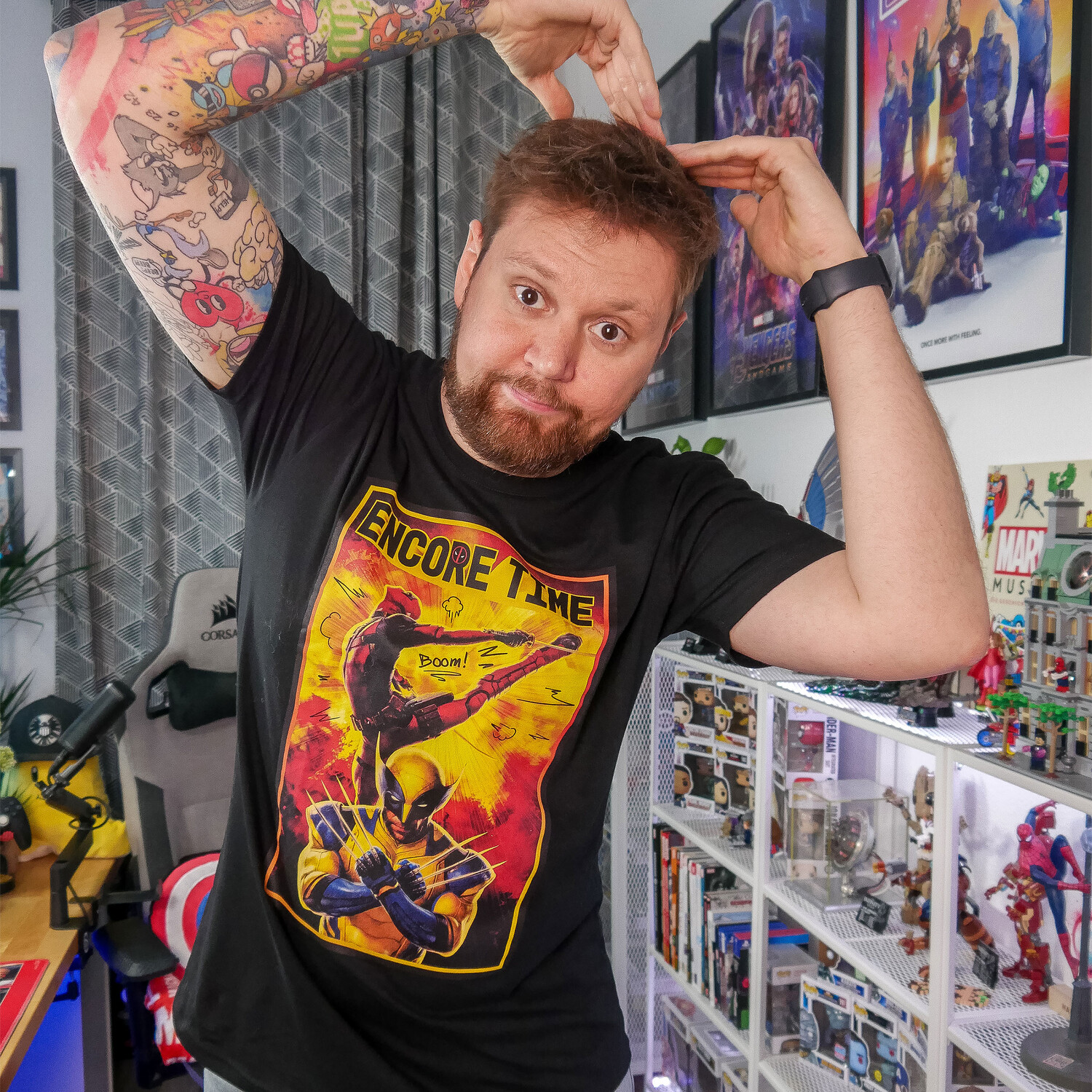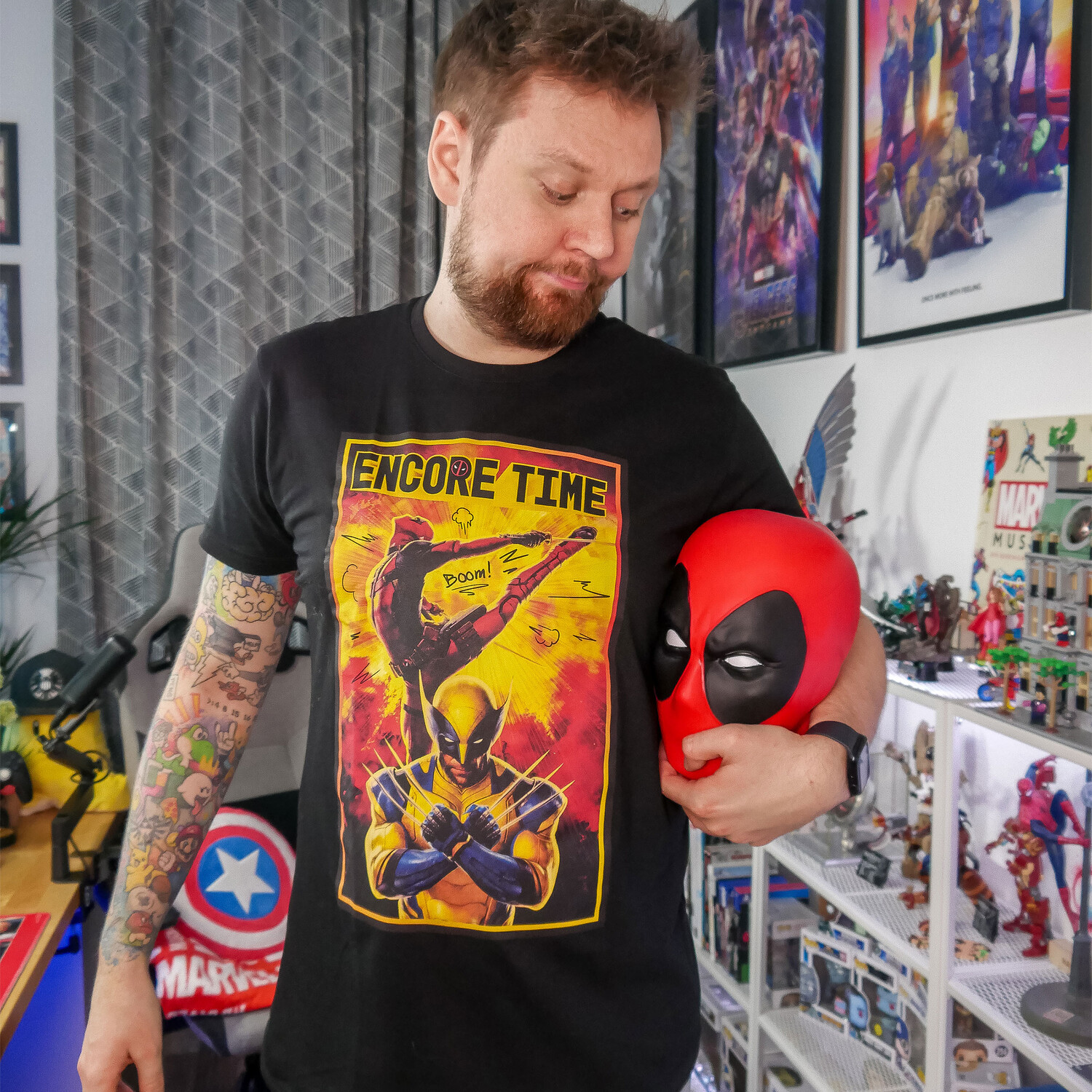 - Готовы ли вы Покажите свою любовь к печально известным антигероям Marvel Showcasing? С нашей официально лицензированной черной футболкой Deadpool 3 — Encore Time вы сможете сделать именно это! Эта рубашка — не только модный тренд, но и доказательство вашего превосходного вкуса к супергероям. На широкоформатном постере спереди изображен Дэдпул в полном действии, готовый сеять хаос и разрушения – точно так же, как и вы, когда носите эту рубашку! Благодаря прямому крою и круглому вырезу рубашка удобно сидит и дает вам большую свободу движений, идеально подходящую для всех ваших героических подвигов. Наденьте его и покажите всему миру, что вы настоящий фанат Marvel. Инструкция по уходу: Можно стирать при 40°C!