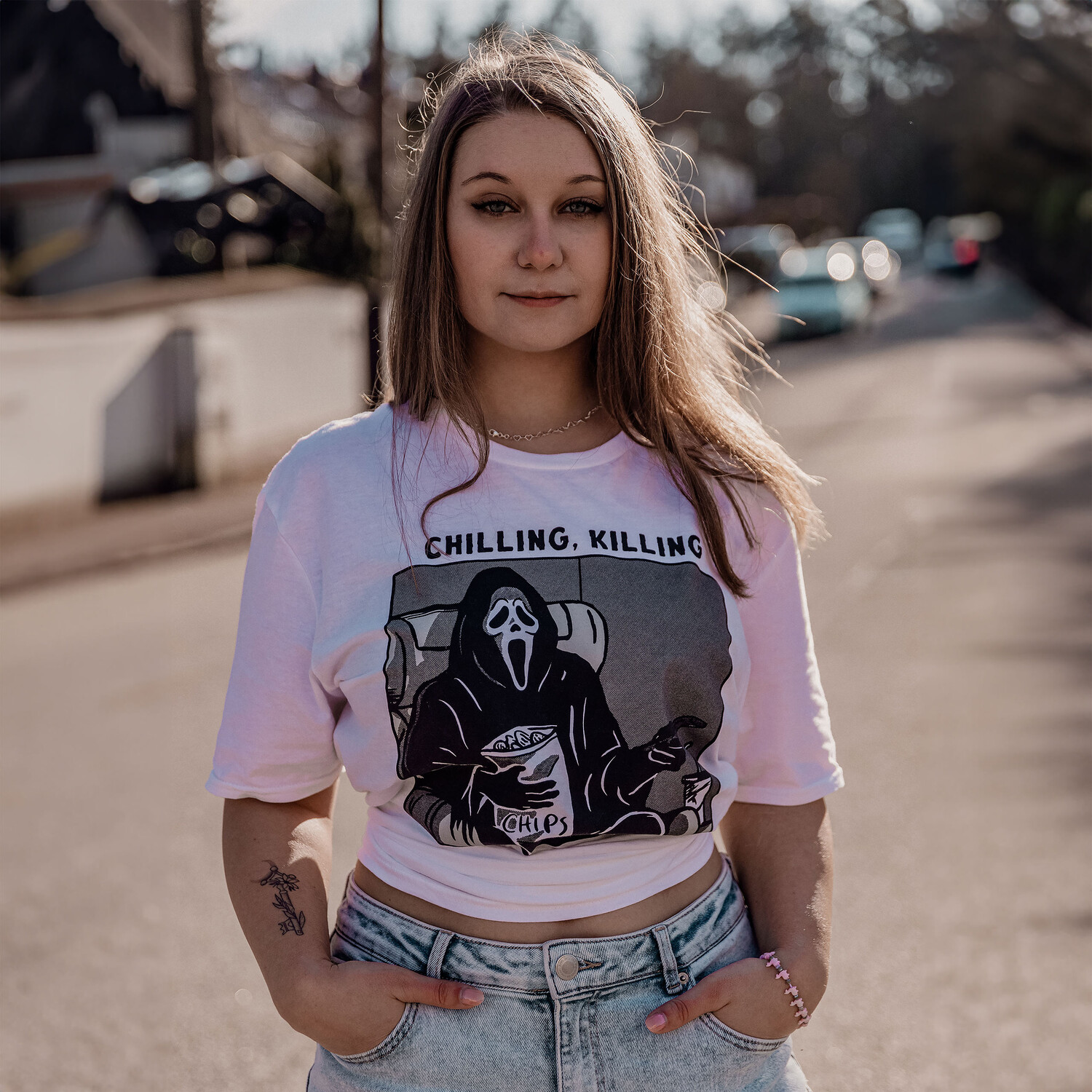 - Вы готовы вывести свое модное выражение ужасов на новый уровень? С нашей официально лицензированной футболкой Scream «Ghost Face — Chilling, Killing» вы сможете сделать именно это! Эта шикарная футболка ярко-белого цвета украшена большим принтом «Призрачное лицо» спереди, который напугает любого. Классная надпись «Chilling, Killing» придает всему этому юмористический оттенок. Благодаря прямому крою и классическому вырезу горловины она не только очень удобна, но и идеально подходит для повседневного использования. Хотите ли вы появиться на вечеринке, напугать друзей или просто выразить свою любовь к Scream, эта футболка станет идеальным компаньоном. Покажите всем, что вы настоящий фанат ужасов. Инструкция по уходу: Можно стирать при 30°C!