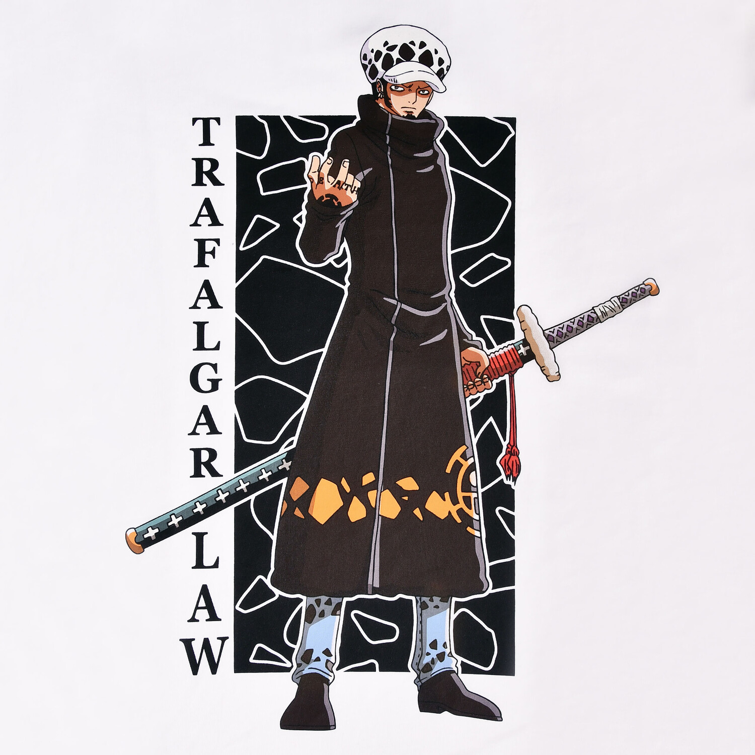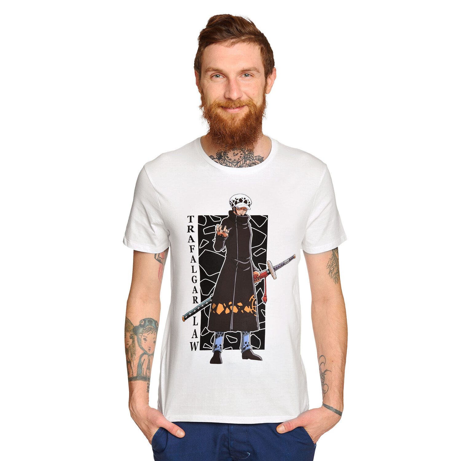 - Арррр, друзья пираты! Отправляйтесь в плавание с этой официально лицензированной футболкой One Piece! С широкоформатным принтом спереди от Trafalgar Law вы станете бесспорным капитаном своей команды. Футболка прямого кроя с круглым вырезом, на котором достаточно места для пиратского ожерелья. В сверкающем белом цвете создается ощущение, что вы плывете прямо по Гранд Лайн. С помощью этой рубашки вы сможете показать, что вы настоящий фанат One Piece, и поделиться своей любовью к приключениям банды Соломенной Шляпы. Так чего же вы ждете? Отправляйтесь в плавание и получите футболку One Piece Trafalgar Law. Инструкция по уходу: Можно стирать при 30°C!