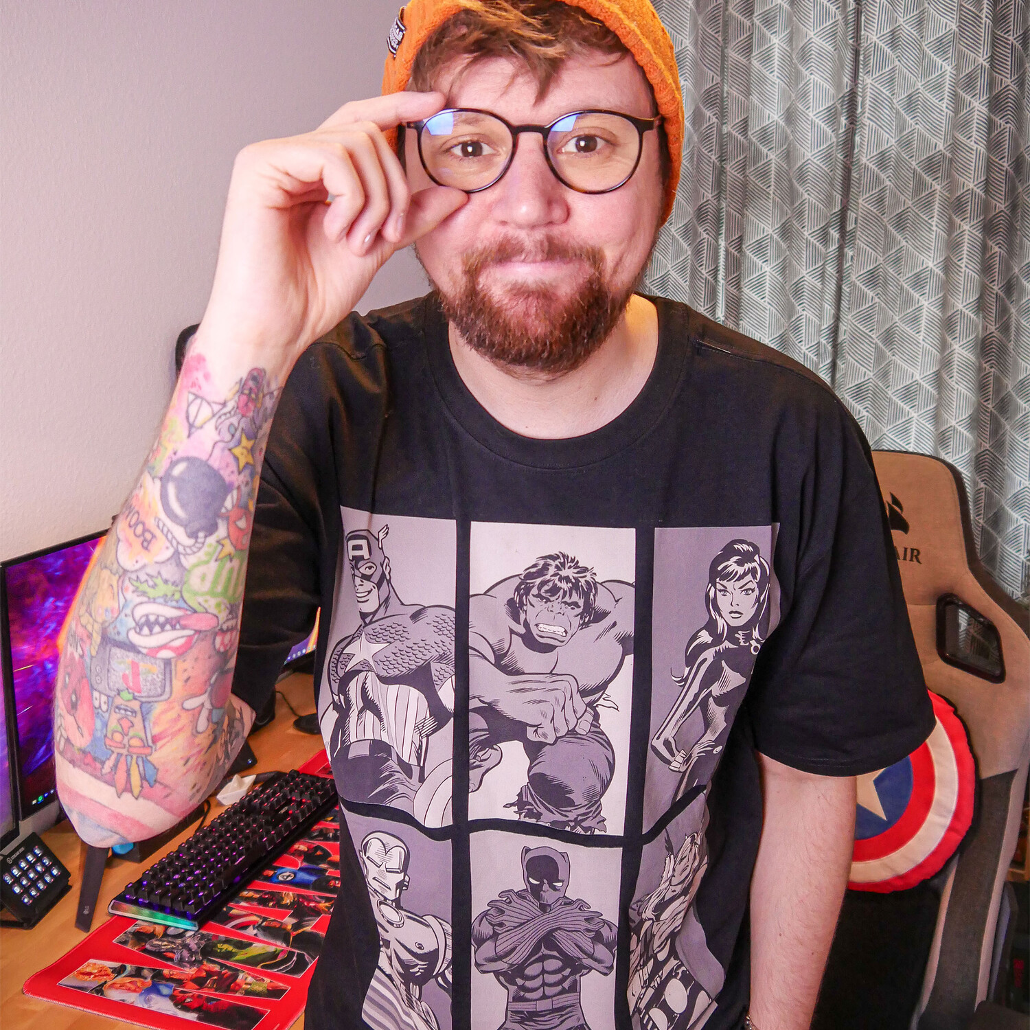 - Готовы продемонстрировать свои суперспособности? С официально лицензированной футболкой Marvel Oversize вы станете героем каждого дня! На крупноформатном принте спереди изображены легендарные супергерои Капитан Америка, Халк, Железный Человек, Тор, Черная Пантера и Черная Вдова. Все они были там с 1939 года и не раз спасали мир. Теперь пришло время и вам присоединиться к ним! Эта футболка прямого кроя и круглого выреза не только очень удобна, но и привлекает внимание. Черный цвет сочетается со всем и позволяет ярким героям Marvel особенно хорошо выделиться. С помощью этой футболки вы покажете всем, что вы настоящий фанат Marvel и готовы спасти мир. Инструкция по уходу: Можно стирать при 30°C!
