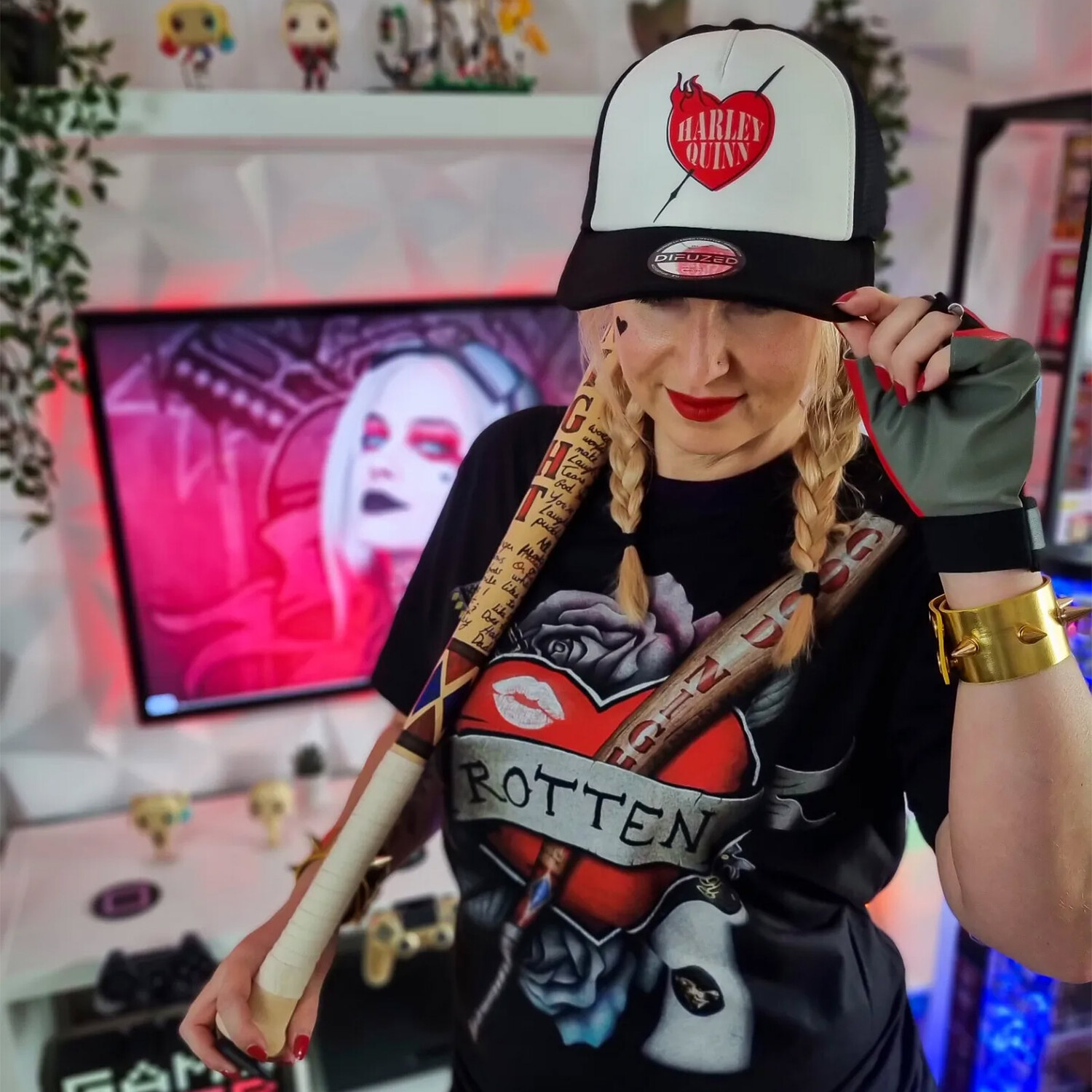 - Мотив: Dr. Бейсбольная бита Харлин Фрэнсис Квинзель, она же Харли Квинн