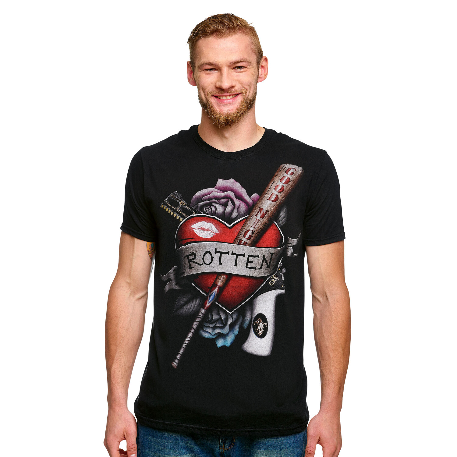 - Вы большой поклонник сумасшедшей и непредсказуемой Харли Квинн? Тогда у нас есть для вас идеальная футболка! На нашей официально лицензированной футболке DC Comics изображен безошибочно узнаваемый мотив доктора Кэтрин. Харлин Фрэнсис Квинзель, более известная как Харли Квинн, со своей печально известной бейсбольной битой. Футболка классического черного цвета, прямого кроя и круглого выреза — идеальна для каждого фаната «Отряда самоубийц»! В этой футболке вы сможете стильно выразить свою страсть к Харли Квинн. Будь то Comic-Con, уютный вечер кино или просто так — с этой футболкой вы гарантированно привлечете внимание. И кто знает, возможно, это вдохновит вас на собственные сумасшедшие приключения. Инструкция по уходу: Можно стирать при 40°C.
