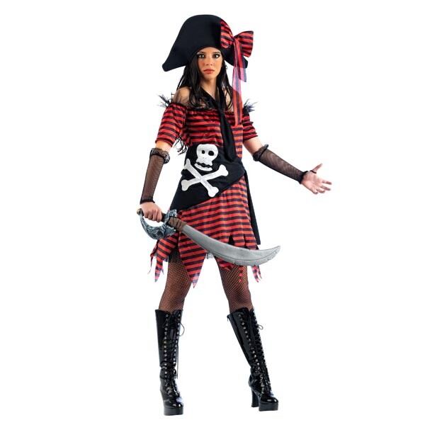 - Он содержит все, что вам нужно, чтобы сразу же отправиться в плавание: сексуальный наплечный костюм. -свободное платье с бахромой в полоску. Черный треугольный шарф с принтом черепа подчеркнет вашу талию. Привлекательная пиратская шляпа с милым красно-черным бантом. В качестве любимого аксессуара прилагается черный галстук.