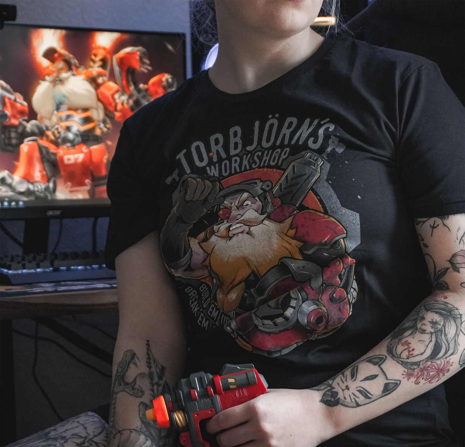 - Знаете ли вы чувство, когда открываете крутой скин для Торбьорна в «Overwatch»? Именно это вы почувствуете, надев нашу футболку «Torbjörns Workshop»! Благодаря большому принту главного инженера спереди и логотипу игры на шее вы покажете всем, что являетесь поклонником Overwatch. Прямой крой и круглый вырез обеспечивают оптимальный комфорт. Будь то игра или повседневная жизнь, эта рубашка станет идеальным компаньоном. Так что вступайте в бой прямо сейчас и получите нашу футболку «Torbjörns Workshop»!
