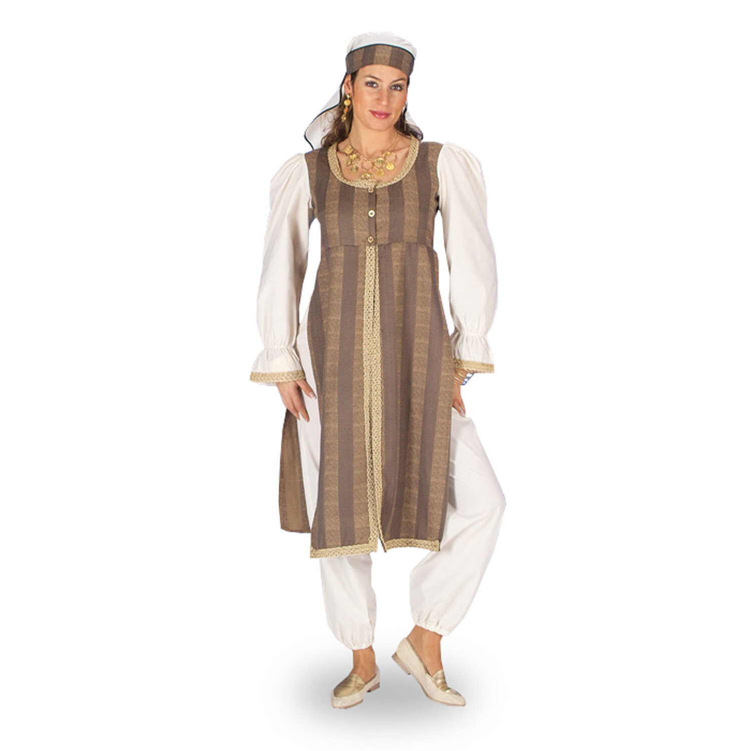 - В этом костюме вы хорошо одеты для любого путешествие по пустыне. Солнце все еще может быть очень жарким, поэтому вы можете освежиться в буфете с напитками ;-) Этот высококачественный костюм состоит из длинного топа, брюк и головного убора.