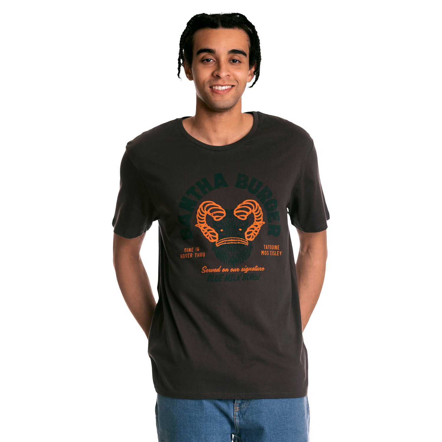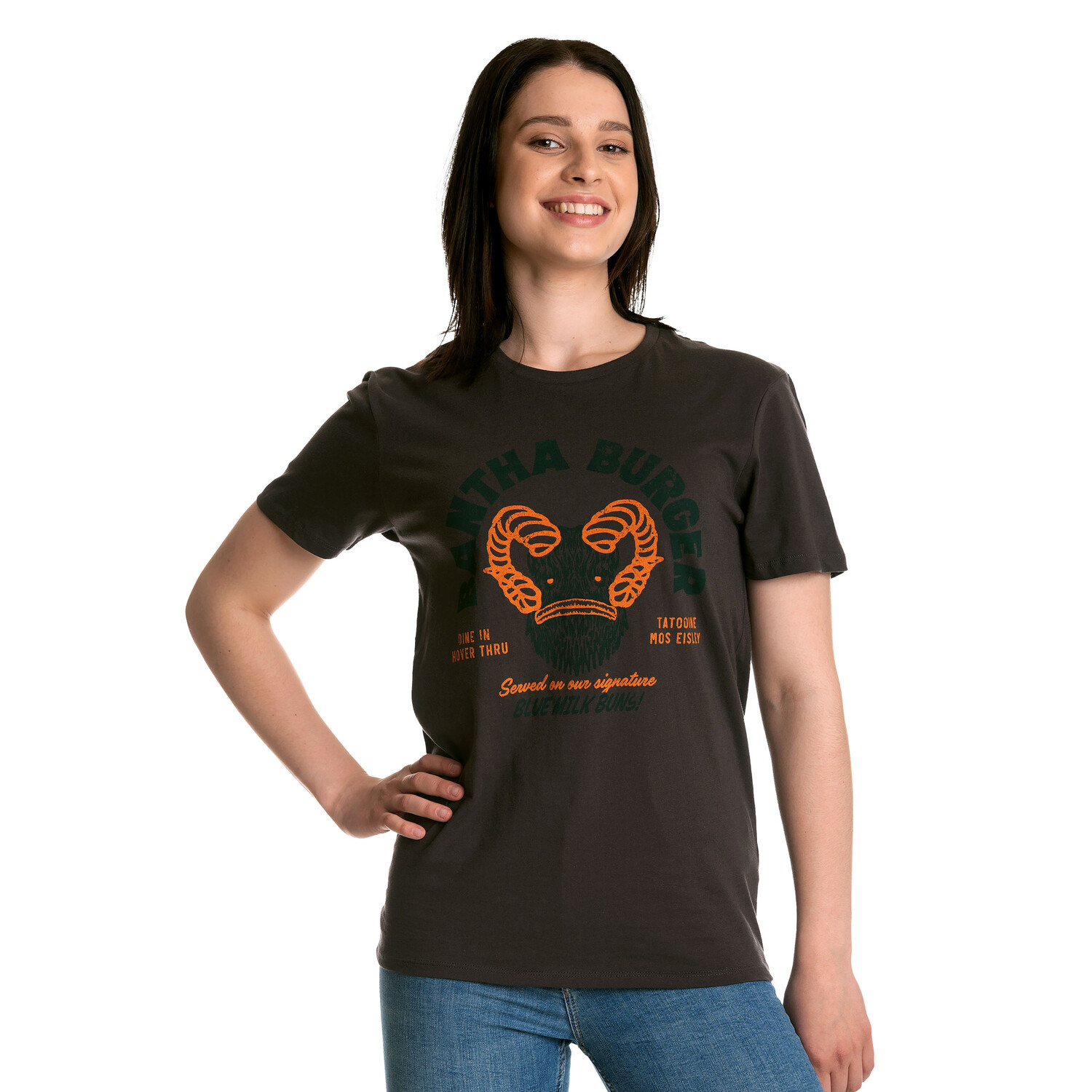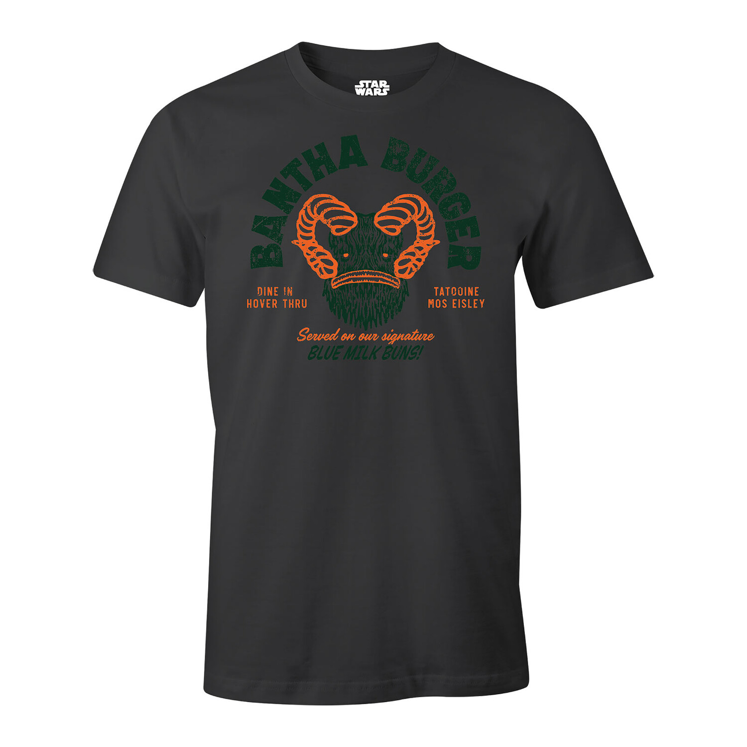 - Добро пожаловать в интернет-магазин Elbenwald! Для всех поклонников «Звездных войн» у нас есть кое-что особенное: наша официально лицензированная футболка «Star Wars Bantha Burger» антрацитового цвета. Благодаря широкоформатному мотиву Bantha Burger вы гарантированно привлечете всеобщее внимание. Рубашка имеет прямой крой и классический круглый вырез, что делает ее удобным спутником на каждый день. Покажите свою любовь к миру научной фантастики и особенно к «Звездным войнам», надев эту крутую рубашку. Встречаетесь ли вы с друзьями, посещаете Comic-Con или просто уютно проводите вечер кино дома — с этой рубашкой вы покажете всем, что вы настоящий фанат «Звездных войн». Инструкции по уходу: Можно стирать при 30°C.