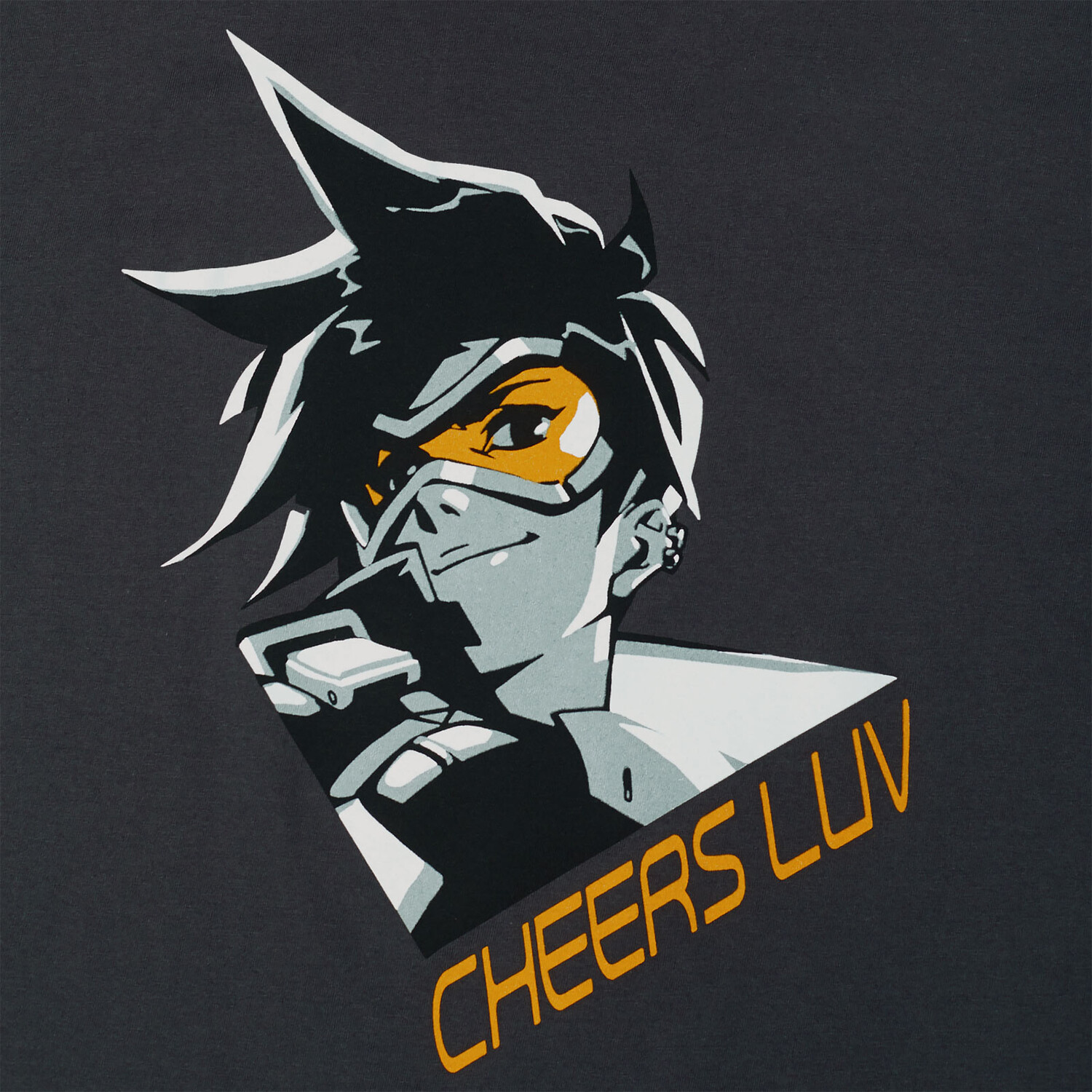 - Вам не хватит ослепительная Трейсер или получение Overwatch? Тогда наденьте официальную футболку Overwatch — Tracer серого цвета и покажите свою страсть к популярному шутеру! Принт Cheers Luv спереди вызовет улыбку на вашем лице, а вы будете чувствовать себя комфортно в удобном прямом крое. Покажите миру, что вы являетесь частью команды Overwatch, и получите серую футболку Tracer прямо сейчас.