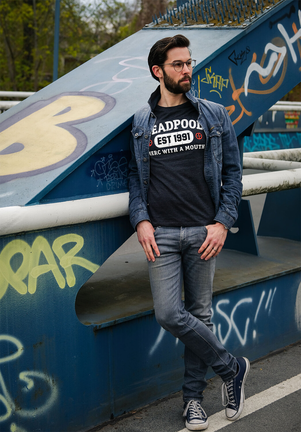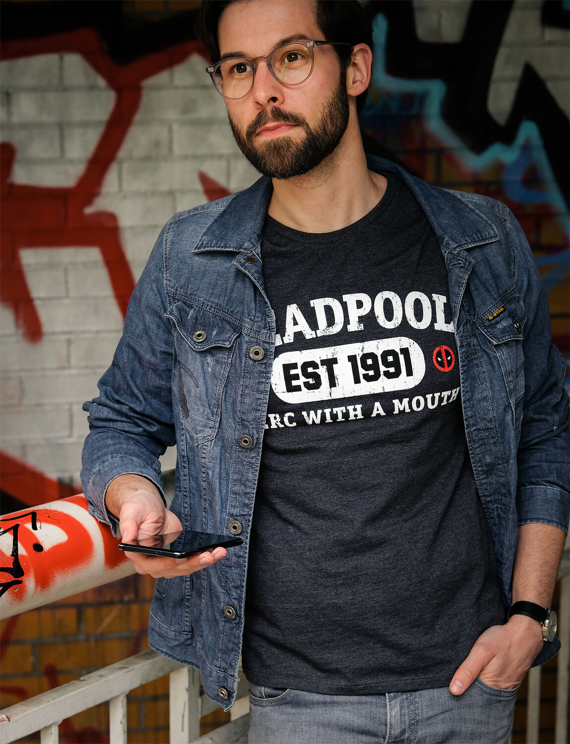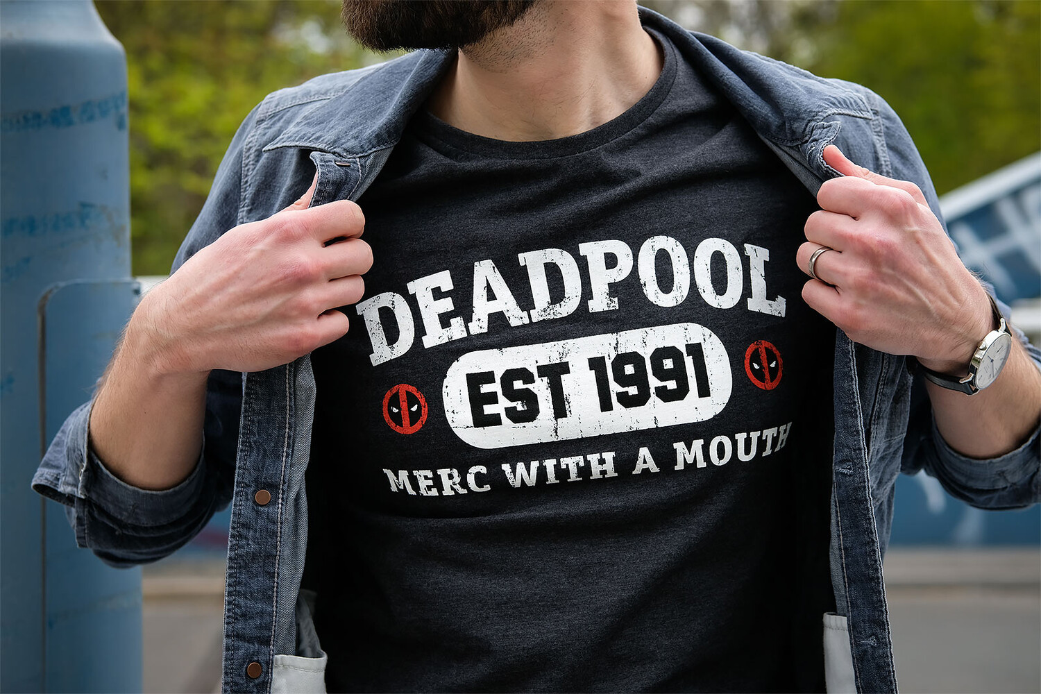 - В этой официально лицензированной футболке Marvel вы будете привлекать внимание на каждой вечеринке Comic-Con и супергеройской вечеринке. На большом принте с изображением Дэдпула спереди изображен мотив «Est 1991 Merc With a Mouth». Это абсолютный must-have для каждого поклонника сообразительного и юмористического антигероя. Рубашка пятнисто-серого цвета подойдет к любому наряду, а благодаря прямому крою и круглому вырезу сидит как влитая. Будьте готовы спасти мир или хотя бы разнообразить свой гардероб с помощью этой рубашки!