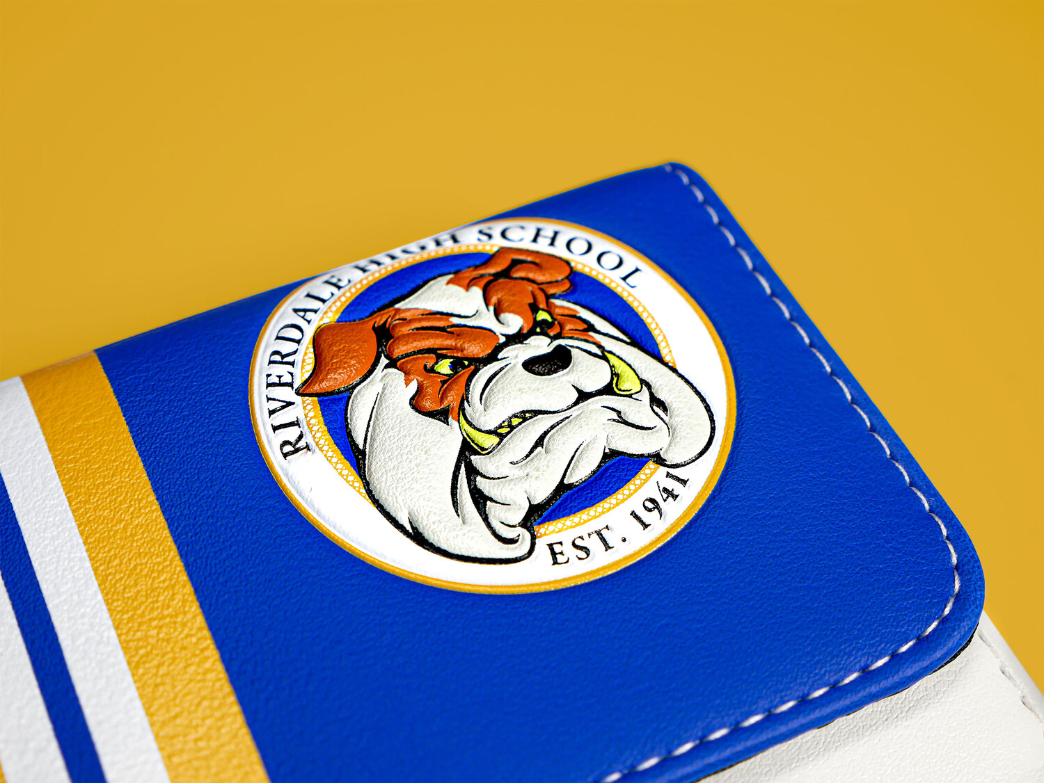 - в дизайне Riverdale Bulldogs с тисненым логотипом и надписью
