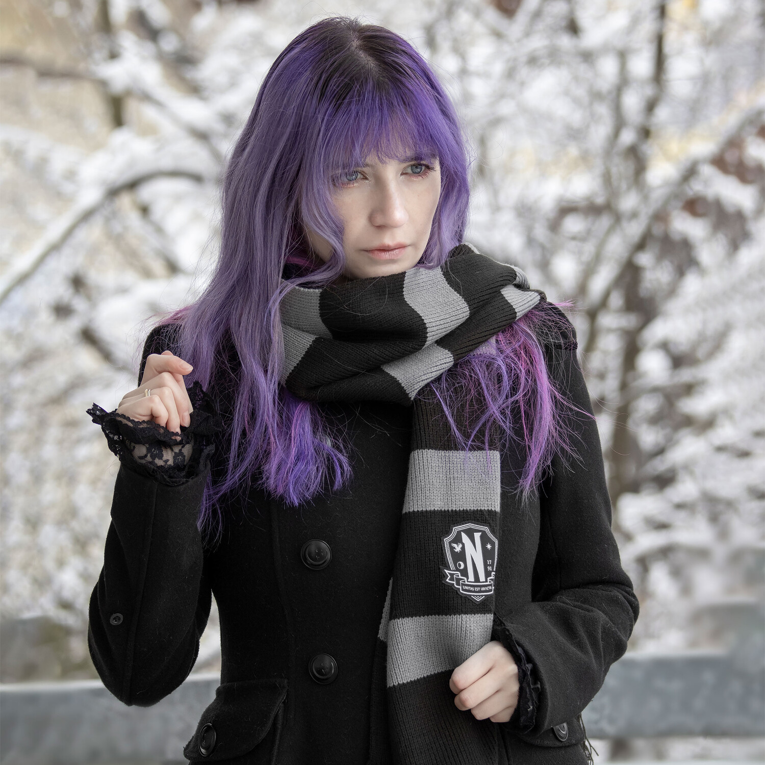 - Вы готовы? Присоединяйтесь к Академии Nevermore? Тогда этот официально лицензированный шарф Wednesday как раз для вас! Благодаря стильному дизайну Nevermore Academy и пришитой нашивке со школьным гербом вы почувствуете, что попали прямо в сериал. Этот шарф длиной 190 см и шириной 24 см не только согревает, но и придает стильный вид. Черный и серый цвета сочетаются с любым нарядом и всегда помогут вам выглядеть хорошо. И лучшая часть? С этим шарфом вы становитесь частью мира среды и можете рассчитывать на множество завистливых взглядов. Так чего же вы ждете? Станьте любимым персонажем и оставьте повседневную жизнь позади. Рекомендации по уходу: Можно стирать при 30°C!