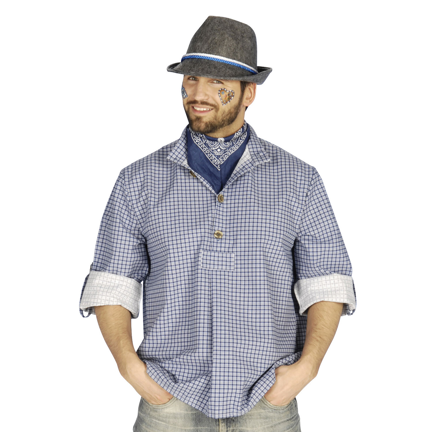 - Традиционный костюм пережил множество модных тенденций и по-прежнему остается современным и популярным предметом на каждой тематической вечеринке. А традиционный костюм принадлежит Октоберфесту, как цветы — пиву. Эта традиционная рубашка в сине-белую клетку имеет небольшой воротник-стойку и короткую планку на пуговицах. Рукава можно подвернуть по желанию и застегнуть на пуговицу. Девушки не смогут перед вами устоять.