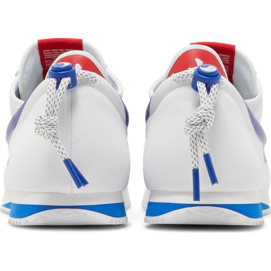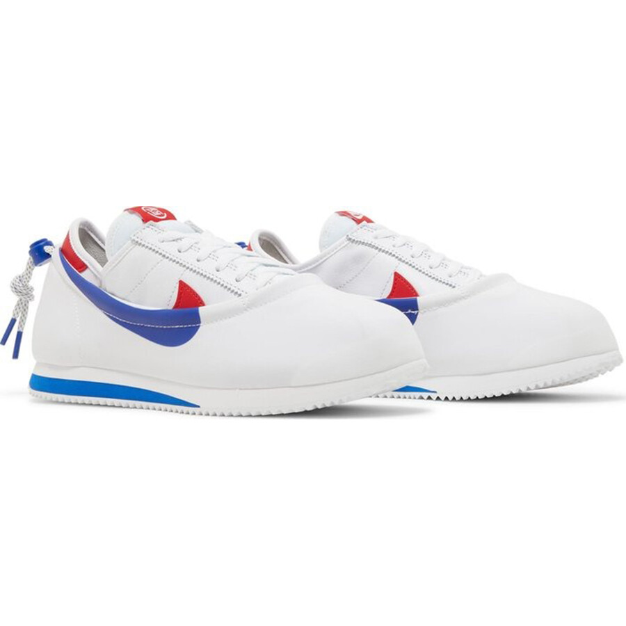Мужские кроссовки Nike CLOT x Cortez 'Forrest Gump'. Эта пара сочетает в себе уникальную конструкцию Эдисона Чена "Три в одном" с внешним видом модели OG 1972 Cortez, которую носил Том Хэнкс в фильме 1994 года "Форрест Гамп", получившем премию "Оскар". Созданная по образцу домашней обуви, модель имеет верх из белой кожи с контрастными алыми акцентами. Фиксируемая шнуровкой с шнурком, внешняя часть обуви украшена нижней половиной синего Swoosh и подкреплена резиновой подошвой, сцепляющейся с поверхностью в виде елочки.