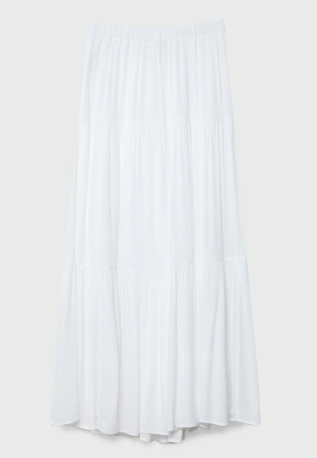Однотонная юбка макси из вискозы с нижней юбкой и эластичным поясом. Посадка стандартная.