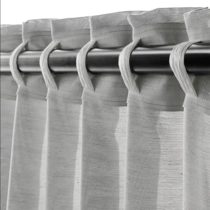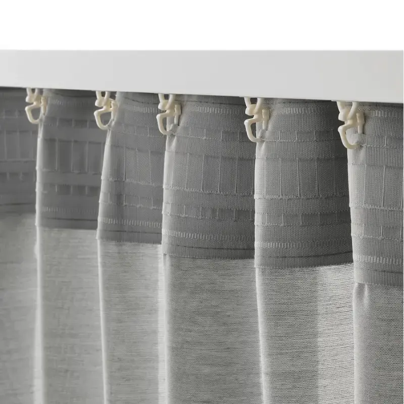 Тесьма по верхнему краю позволяет повесить гардину непосредственно на карниз, используя специальные прорези. Гардину также можно повесить на специальные крючки с бегунками.