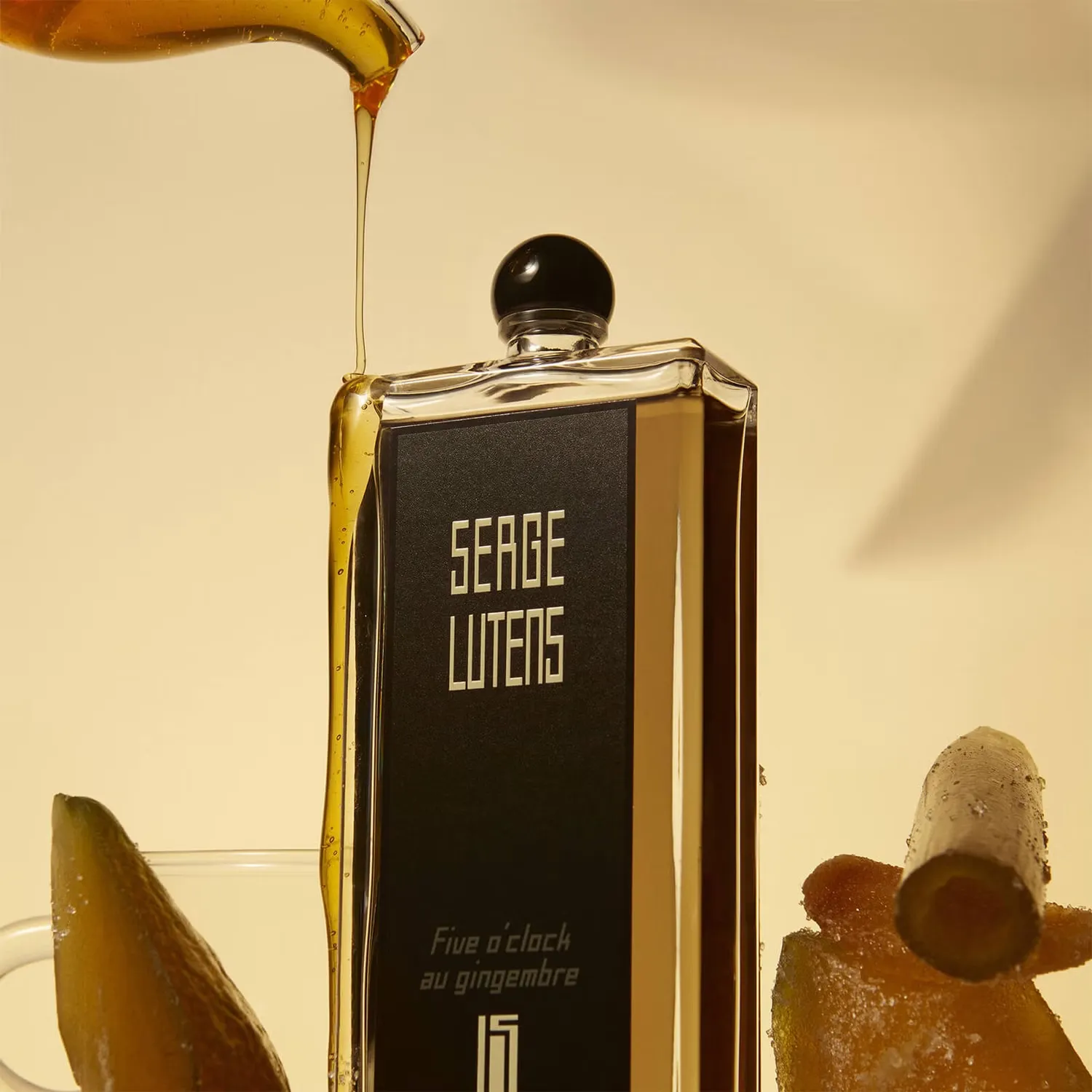 Верхние ноты: чай, бергамот.Ноты сердца: имбирь, корица, древесина.Базовые ноты: какао, мед, амбра, пачули, перец.Элегантный и изысканный парфюм Five o’clock au Gingembre Eau de Parfum от Serge Lutens напоминает образ послеобеденный чай в Букингемском дворце. Этот аромат с базой из нежных засахаренных имбирей зажигает внимание ценителей. Этот аромат представляет собой ритуальную церемонию, обращенную к роскошной части внутри нас, к нашему воображению в белых перчатках. Восточный и слегка пряный, унисекс-аромат включает в себя верхние ноты чая и бергамота, раскрывающиеся в сердце имбиря, корицы и древесных нот. Богатая база из какао, меда, амбры, пачули и перца согревает и усиливает аромат. Ароматы Serge Lutens рассказывают исключительную историю благодаря своим уникальным, богатым, роскошным и сложным ароматам. Парфюмированная вода заключена в минималистичный флакон с чистыми линиями и угловатым дизайном, простой внешний вид которого подчеркивает сложность содержащейся в нем драгоценной жидкости.
