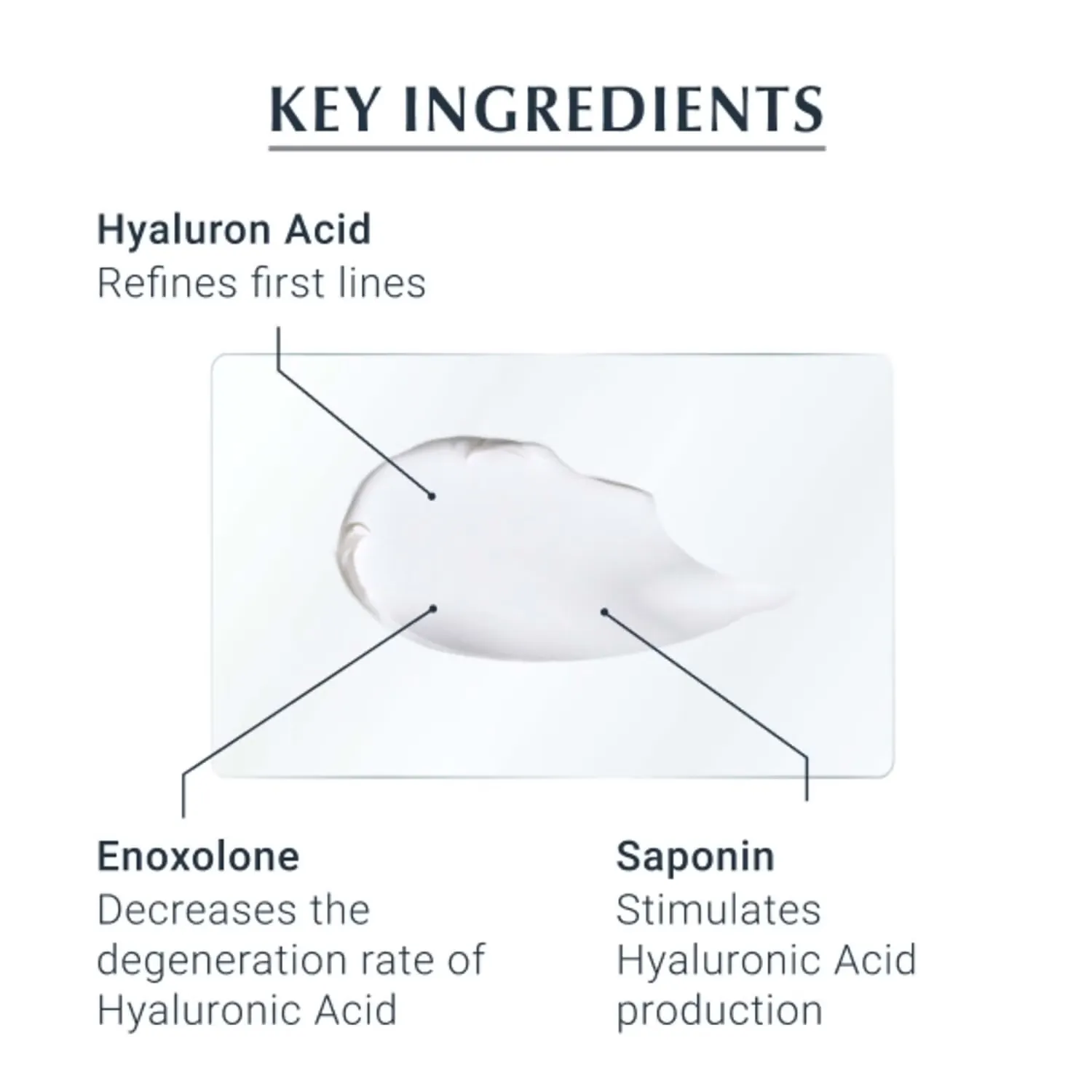 Вода, глицерин, масло Butyrospermum Parkii, изопропилпальмитат, пантенол, каприл-каприновый триглицерид, гидрогенизированные кокосовые глицериды, октилдодеканол, бутиленгликоль, глицерилстеарат цитрат, стеариловый спирт, цетиловый спирт , Экстракт зародышей глициновой сои, гиалуронат натрия, токоферол, кроссполимер метилметакрилата, кроссполимер акрилата-C10-30-алкилакрилата, диметикон, карбомер, каприлилгликоль, тринатрий ЭДТА, 1-2-гександиол, феноксиэтанол, парфюмерная композиция.