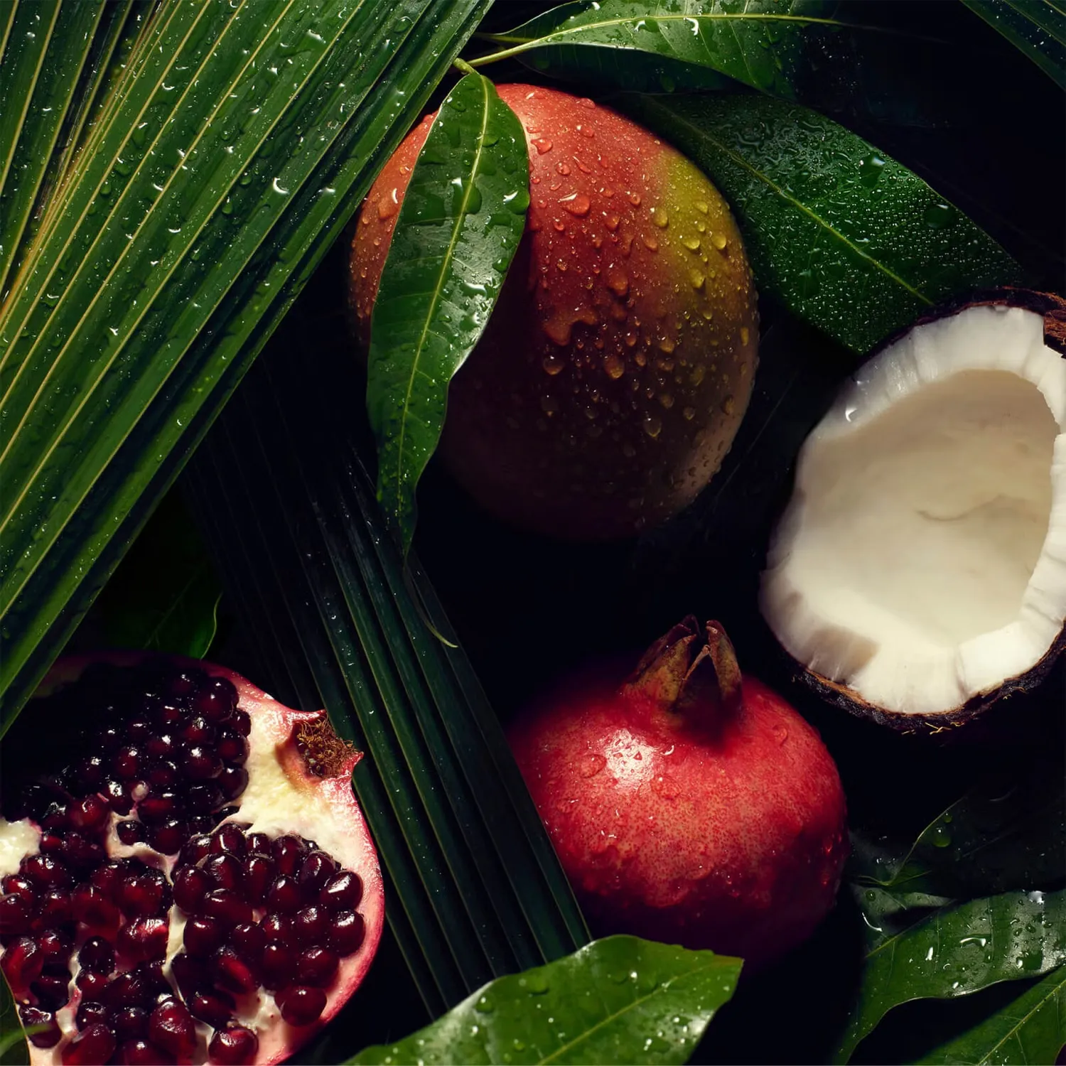 Вода\Aqua\Eau, лауроилметилизетионат натрия, хлорид натрия, бабассуамидопропилбетаин, кокамид мипа, пропандиол, метилкокоилтаурат натрия, дистеарат гликоля, масло семян Punica Granatum (гранат), Фруктовый сок Cocos Nucifera (кокос), масло Cocos Nucifera (кокос), масло семян Mangifera Indica (манго), экстракт отрубей Avena Sativa (овсяные), гидролизованный экстракт Adansonia Digitata, экстракт кожуры Citrus Aurantium Dulcis (апельсин), Chondrus Crispus (каррагинан) Экстракт, масло семян Helianthus Annuus (подсолнечное), кроссполимер бегенил/октилдодецилпропандиола цитрата, кроссполимер октилдодецилцитрата, стеарамидопропилдиметиламин, токоферол, глицерин, лауриновая кислота, гидроксипропилгуар-гидроксипропилтримониум хлорид, лаурат натрия, лецитин, ароматизатор (парфюм),* бензилбензоат, Амилциннамал, цитронеллол, лимонен, гидроксицитронеллаль, гераниол, цитраль, линалоол, лимонная кислота, сульфат натрия, фитат натрия, сорбат калия, феноксиэтанол.