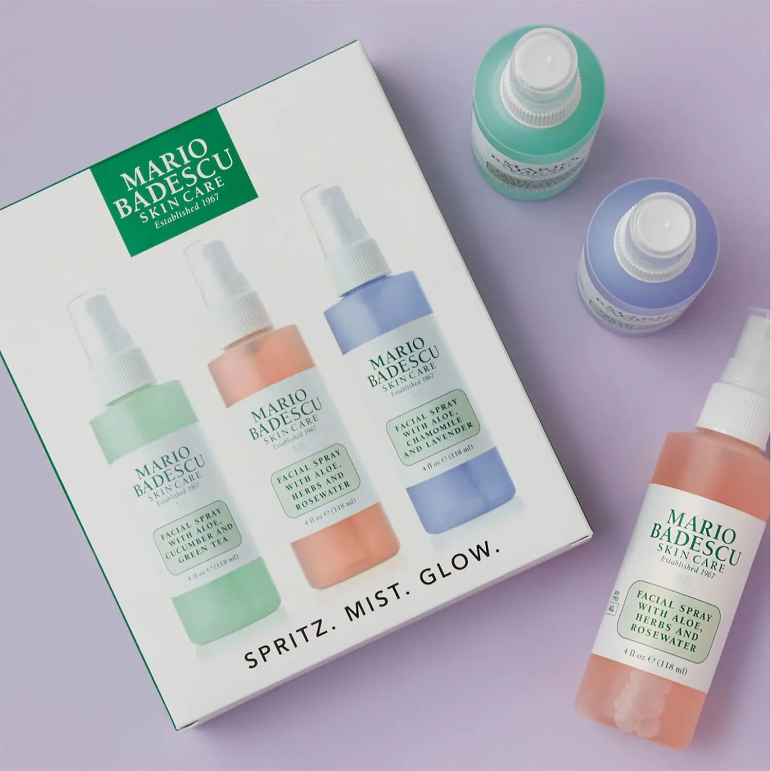 Спрей для лица с алоэ, огурцом и зеленым чаем: вода (вода, вода), пропиленгликоль, вода листьев Mentha Piperita (мята перечная), фруктовая вода Cucumis Sativus (огурец), алоэ Сок листьев барбаденсиса, экстракт листьев камелии китайской, экстракт плодов Cucumis Sativus (огурец), экстракт фукуса пузырчатого (пузырчатка), пропандиол, полисорбат 20, этилгексилглицерин, бензофенон-4, отдушка (аромат), хлорид натрия, лимонная кислота, сорбат калия, натрий. Бензоат, гексилциннамал, лимонен, линалоол, CI 19140 (желтый 5), CI 42090 (синий 1).