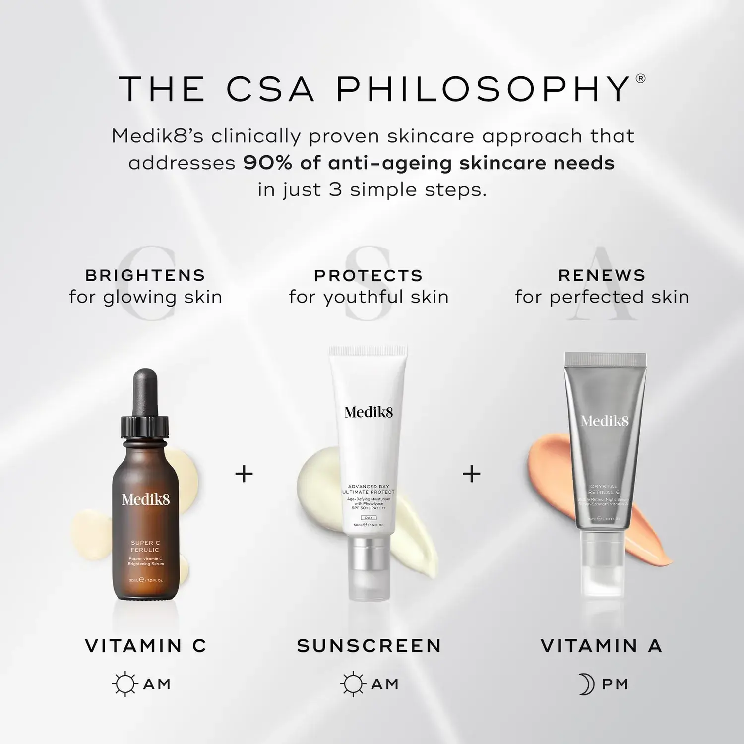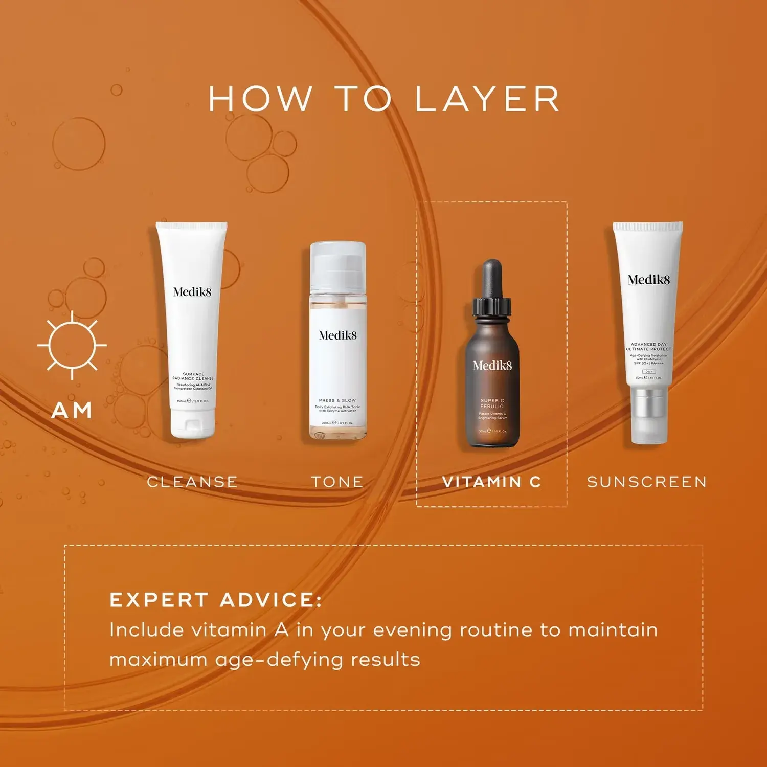 Метоксиметилбутанол, 3-O-этиласкорбиновая кислота, пропиленгликоль, бутиленгликоль, пентиленгликоль, феруловая кислота, тетрагидродиферулоилметан, вода (вода), токоферилацетат.