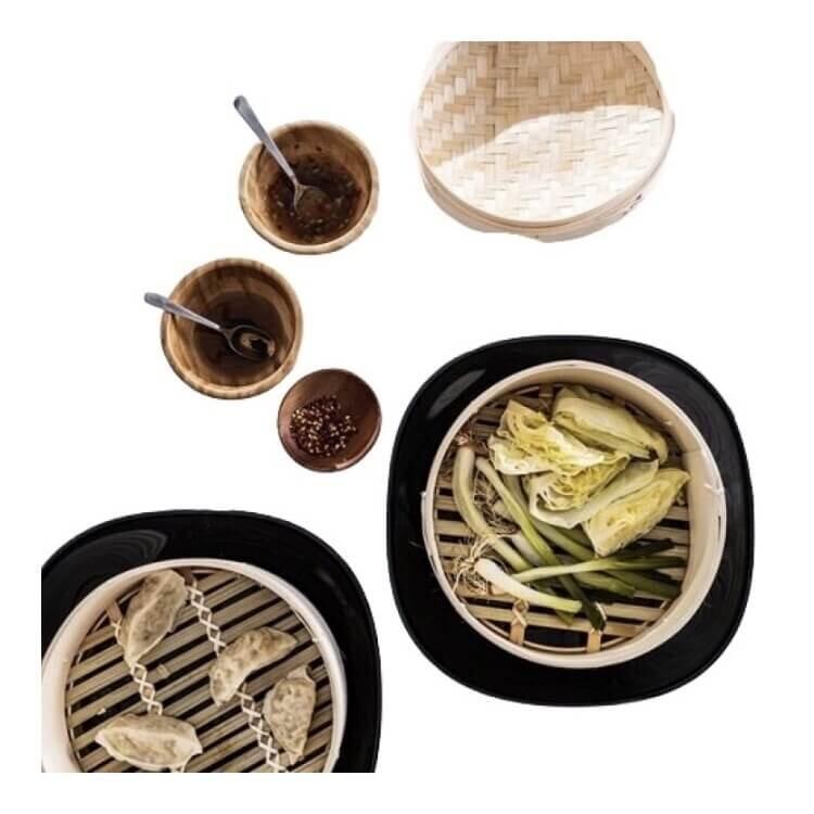 Эта пароварка отлично подходит для приготовления овощей, рыбы, курицы и пельменей. В ней две емкости, чтобы готовить разные блюда одновременно и сразу же подавать на стол. Предметы из бамбука подчеркнут уютную атмосферу вашей кухни.