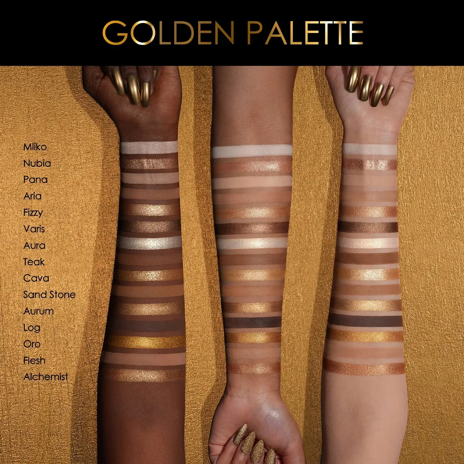 Золото: тальк, бронзовый порошок (Ci 77400), октилдодецилстеароилстеарат, слюда, диизостеарилмалат, диоксид титана (Ci 77891), оксиды железа ( Ci 77491), диоксид кремния, каприлилгликоль, этилгексилглицерин, сополимер молочной и гликолевой кислот, стеарат цинка, токоферол, медный порошок (Ci 77400), алюминиевый порошок (Ci 77000), синтетический фторфлогопит, боросиликат кальция и титана, боросиликат кальция и натрия, кальций-натрий. Боросиликат, силикат алюминия, кальция, натрия, глинозем, ферроцианид железа (Ci 77510), оксид олова.