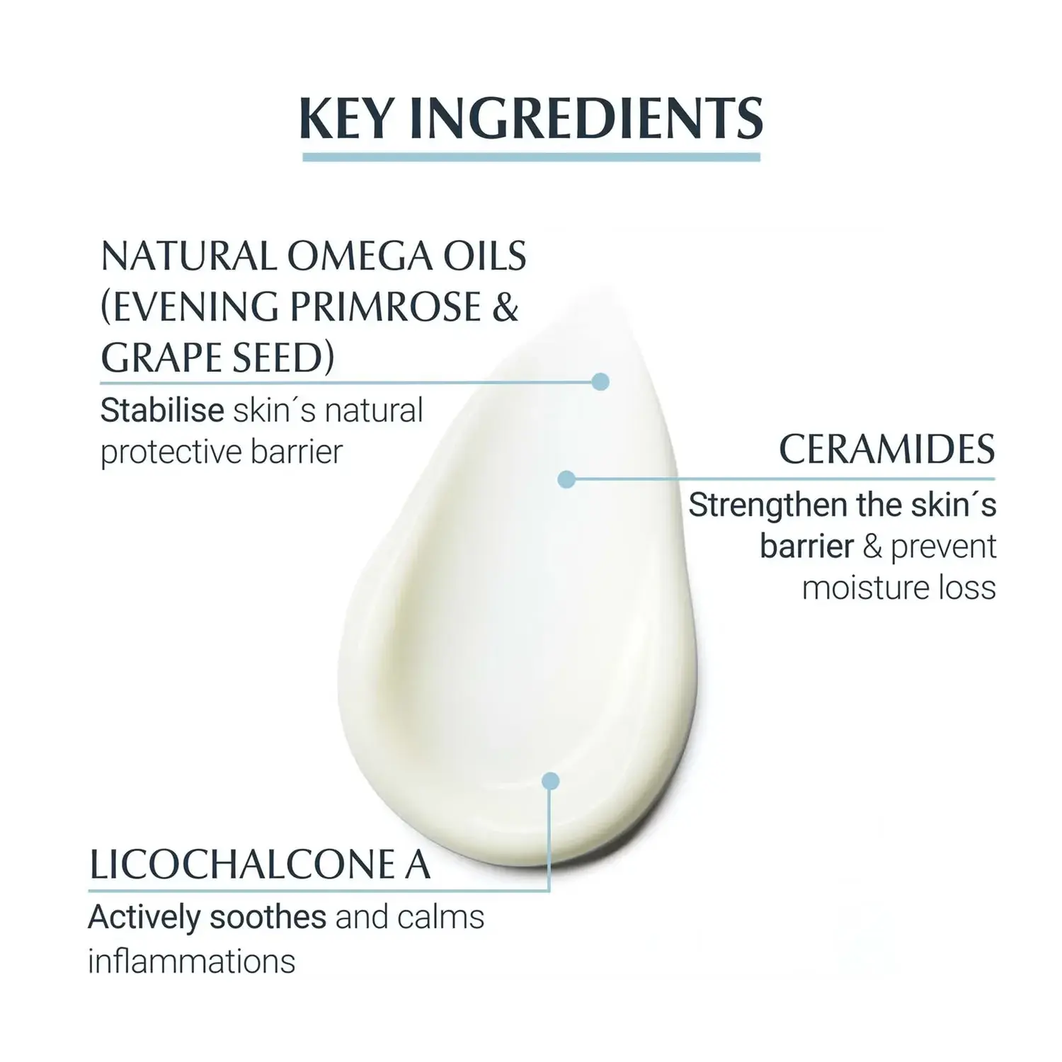 Аква, глицерин, масло семян Vitis Vinifera, масло Oenothera Biennis, каприл-каприн-триглицерид, циклометикон, диметикон, пентаэритриттетраизостеарат, триизостеарин, цетиловый спирт, глицерилстеарат, стеарат ПЭГ-40. , экстракт корня солодки инфлаты, церамид NP, токоферол, аскорбилпальмитат, лимонная кислота, цитрат натрия, BHT, 1-2-гександиол, дециленгликоль, феноксиэтанол.