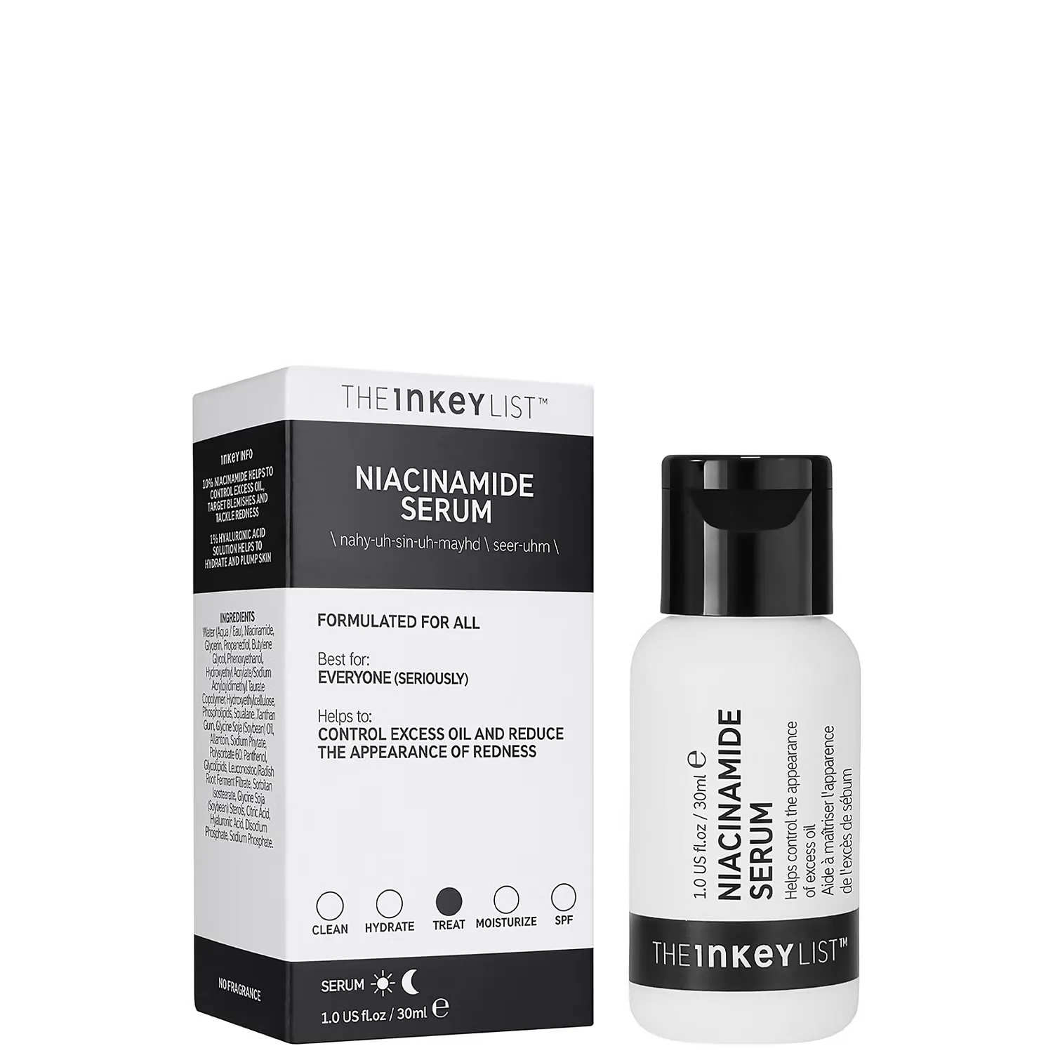 Вода (Aqua/Eau), ниацинамид, глицерин, пропандиол, бутиленгликоль, феноксиэтанол, сополимер гидроксиэтилакрилата/акрилоилдиметилтаурата натрия, гидроксиэтилцеллюлоза, фосфолипиды, сквалан, ксантановая камедь, глициновая соя ( Соевое масло, аллантоин, фитат натрия, полисорбат 60, пантенол, гликолипиды, лейконосток/фильтрат фермента корня редиса, изостеарат сорбитана, глициновые соевые стерины (соевые бобы), лимонная кислота, гиалуроновая кислота, динатрийфосфат, фосфат натрия.