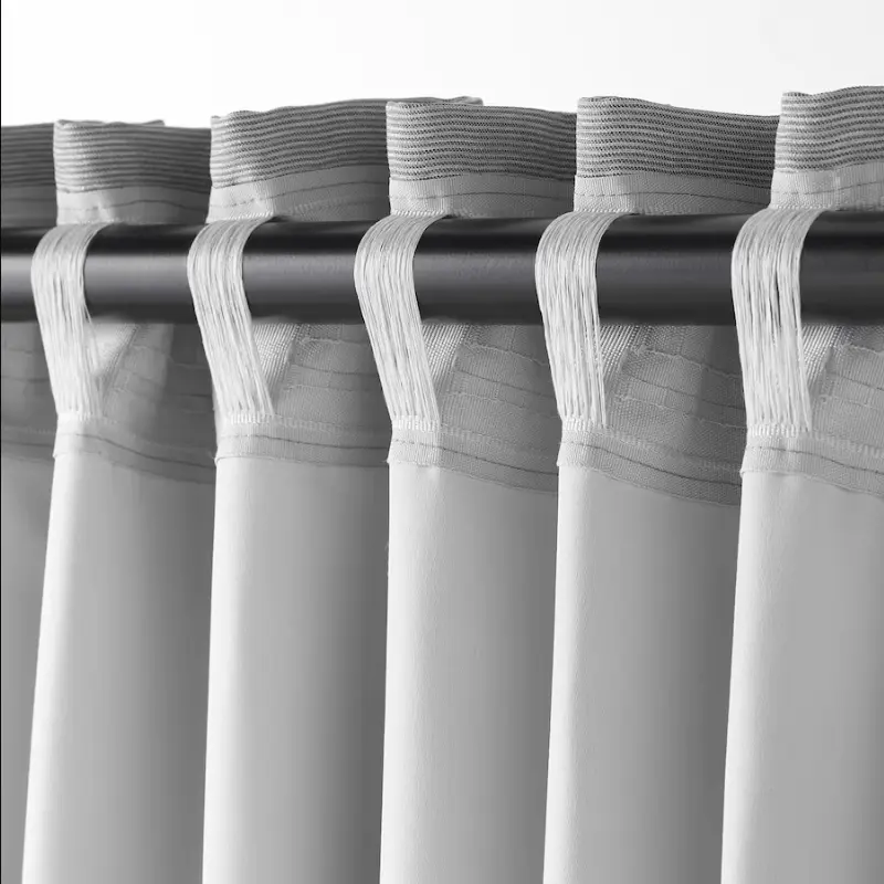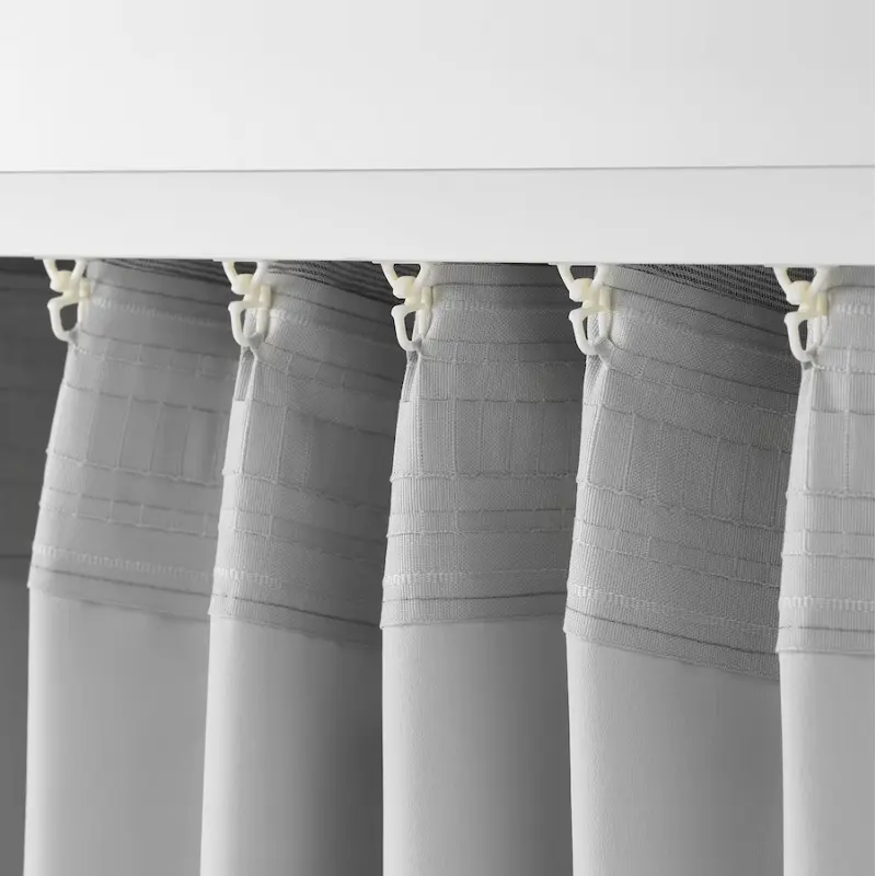 Тесьма по верхнему краю позволяет повесить гардину непосредственно на карниз, используя специальные прорези. Гардину также можно повесить на специальные крючки с бегунками.