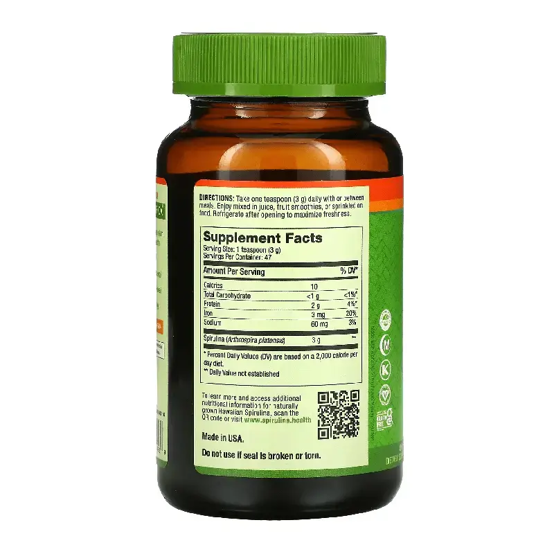 Спирулина — это сине-зеленая микроводоросль, которая содержит натуральный белок, а также естественным образом содержит витамины A, K и B12, магний, фикоцианин, ГЛК, хлорофилл и зеаксантин. Натуральная добавка из суперфудов, укрепляет иммунитет и поддерживает здоровье сердечно-сосудистой системы. Комплексный источник протеина с хлорофиллом.