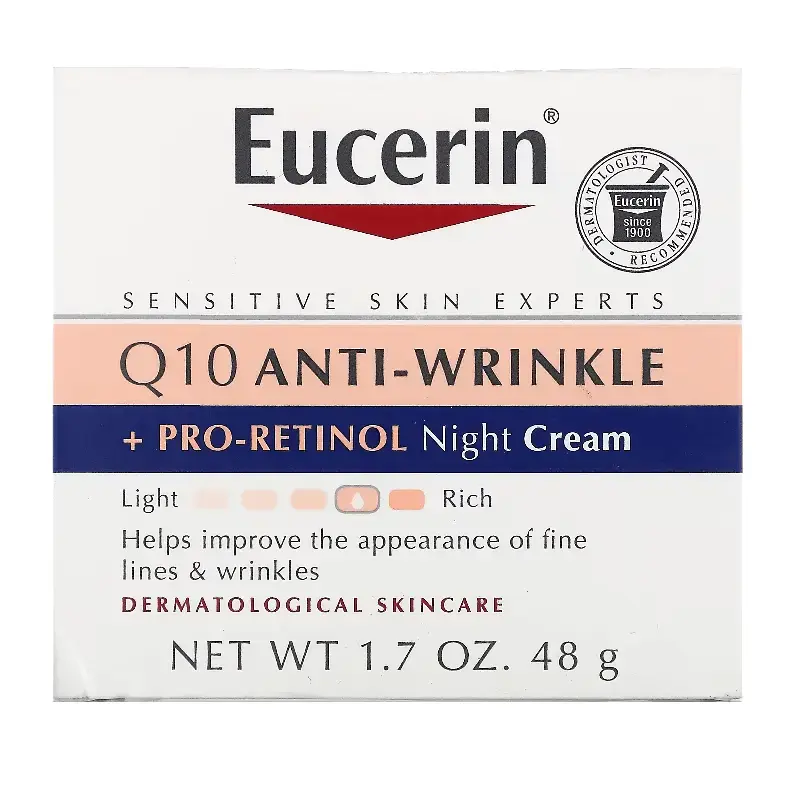 Eucerin Q10 Anti-Wrinkle + Pro Retinol Night Cream — это увлажняющий ночной крем против морщин, предназначенный для сухой и чувствительной кожи. Он специально разработан, чтобы не вызывать раздражения и бережно относиться к коже.
