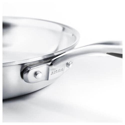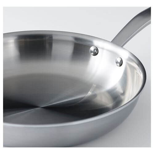 Вся сковорода, включая дно и стенки, имеет один слой алюминия между двумя слоями нержавеющей стали. Это позволяет равномерно распределять тепло и энергию в нескольких направлениях и легко регулировать температуру.
