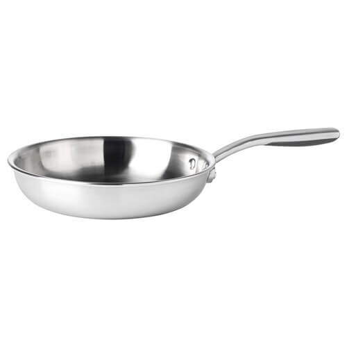 Эта сковорода без покрытия изготовлена из нержавеющей стали повышенной толщины, что позволяет готовить при более низких температурах. Она также имеет эргономичную ручку.