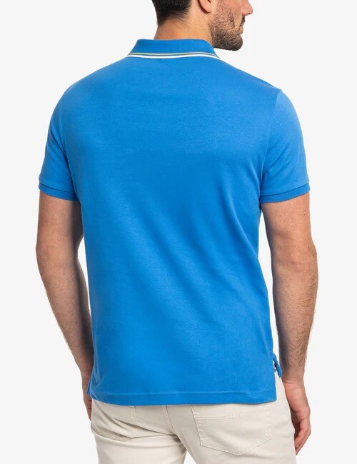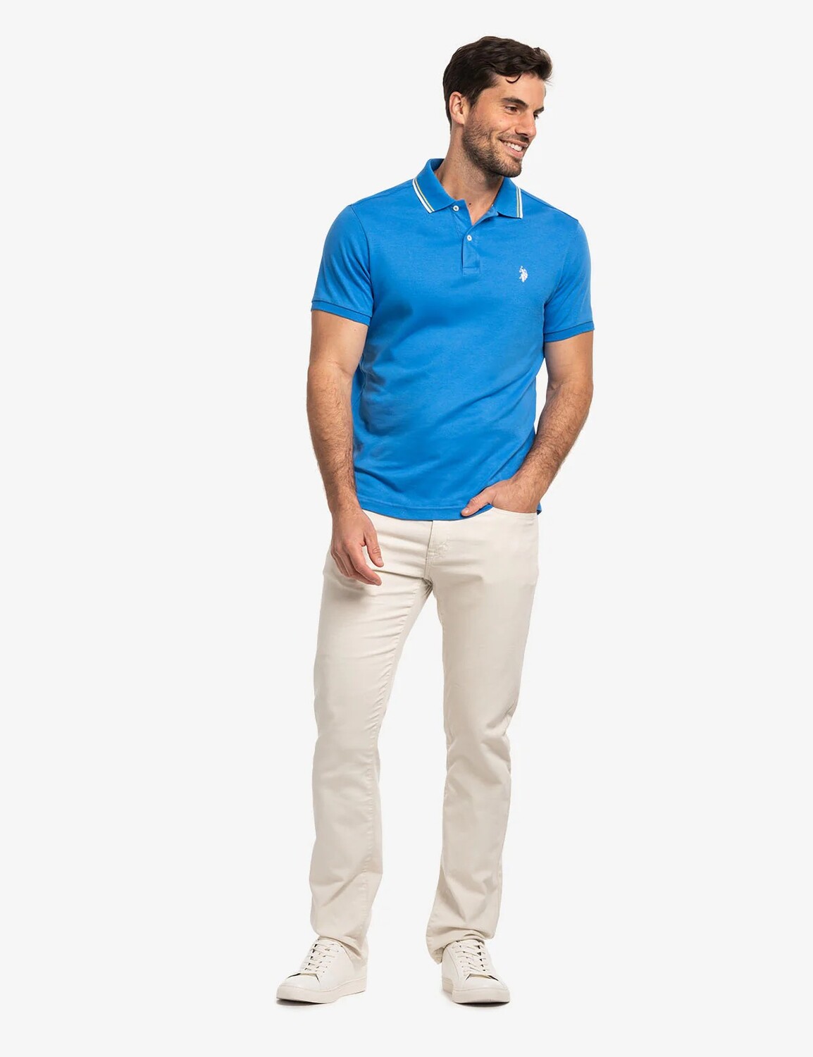 Облегающая поло с контрастной бейкой от U.S. Polo Assn. сочетает в себе элегантный крой и повседневный комфорт. Изготовленная из двойной интерлоковой ткани, она обладает гладкой, прочной текстурой и не мнется. Модель отличается классическим воротником с контрастной бейкой, планкой на двух пуговицах, резинкой на рукавах и боковыми разрезами, которые подчеркивают спортивный силуэт. Небольшая вышитая эмблема U.S. Polo Assn. на левой стороне груди завершает образ.