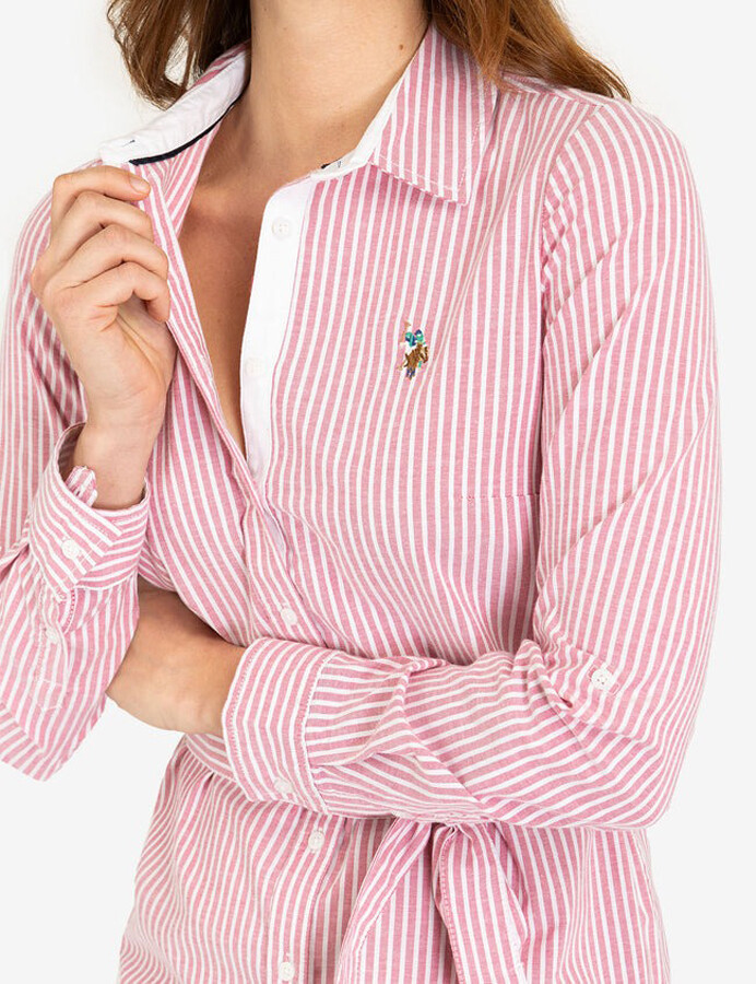 Платье оксфорд в полоску, с логотипом.