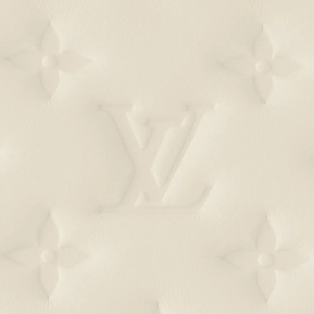 Сумка Coussin PM, изготовленная из овечьей кожи с тиснением в виде монограммы, представлена в новой освежающей цветовой гамме. Ее удобно носить как клатч, можно носить на плече с помощью массивной цепочки или через плечо благодаря широкому текстильному ремешку с логотипом Louis Vuitton. Сумка имеет два отделения, разделенных карманом на молнии.