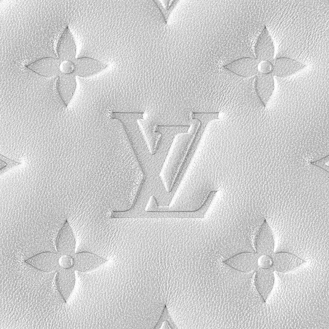 Сумка Coussin PM, изготовленная из овечьей кожи с тиснением в виде монограммы, представлена в новой освежающей цветовой гамме. Ее удобно носить как клатч,  можно носить на плече с помощью массивной цепочки или через плечо благодаря широкому текстильному ремешку с логотипом Louis Vuitton. Сумка имеет два отделения, разделенных карманом на молнии.