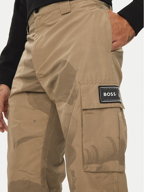 Тканевые брюки свободного кроя Boss, бежевый