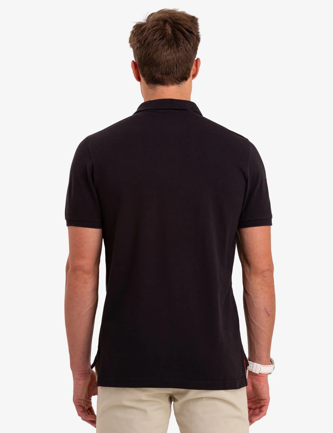 Футболка поло с логотипом U.S. Polo Assn. — это вневременный предмет гардероба. Модель украшена воротником с контрастной передней планкой на двух пуговицах, большим разноцветным вышитым логотипом вдоль верхней левой части груди и короткими рукавами с манжетами из резинки. Футболка украшена аппликацией в виде цифры три на правом рукаве и отделана разрезами по подолу с контрастной тесьмой. Изделие выполнено в классическом стиле рубашки поло и имеет свободный силуэт для удобной посадки.