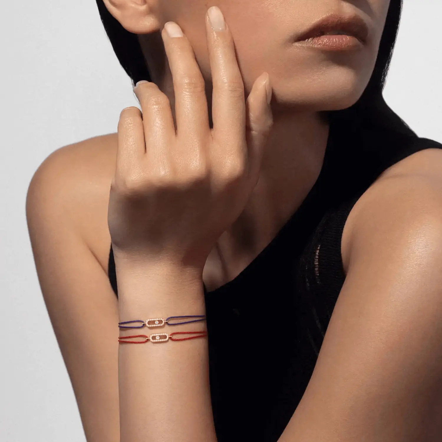Движущаяся клетка с бриллиантами возвела Мессику в статус культового парижского ювелира. Мотив Move с его элегантными и минималистичными движущимися бриллиантами, ставшими сразу узнаваемыми, является символом Дома. Этот браслет на шнурке из бриллиантов и золота повторяет коды ювелирной коллекции Move Uno с клеткой из 18-каратного розового золота и бриллиантом в центре, который танцует в ритме ваших движений. Идеально подходит для повседневной носки и позволяет выразить себя с помощью различных цветов. Какой из них вы выберете? Если вы ищете гламурный и модный роскошный браслет, эта версия из розового шнура и розового золота обязательно вам понравится!