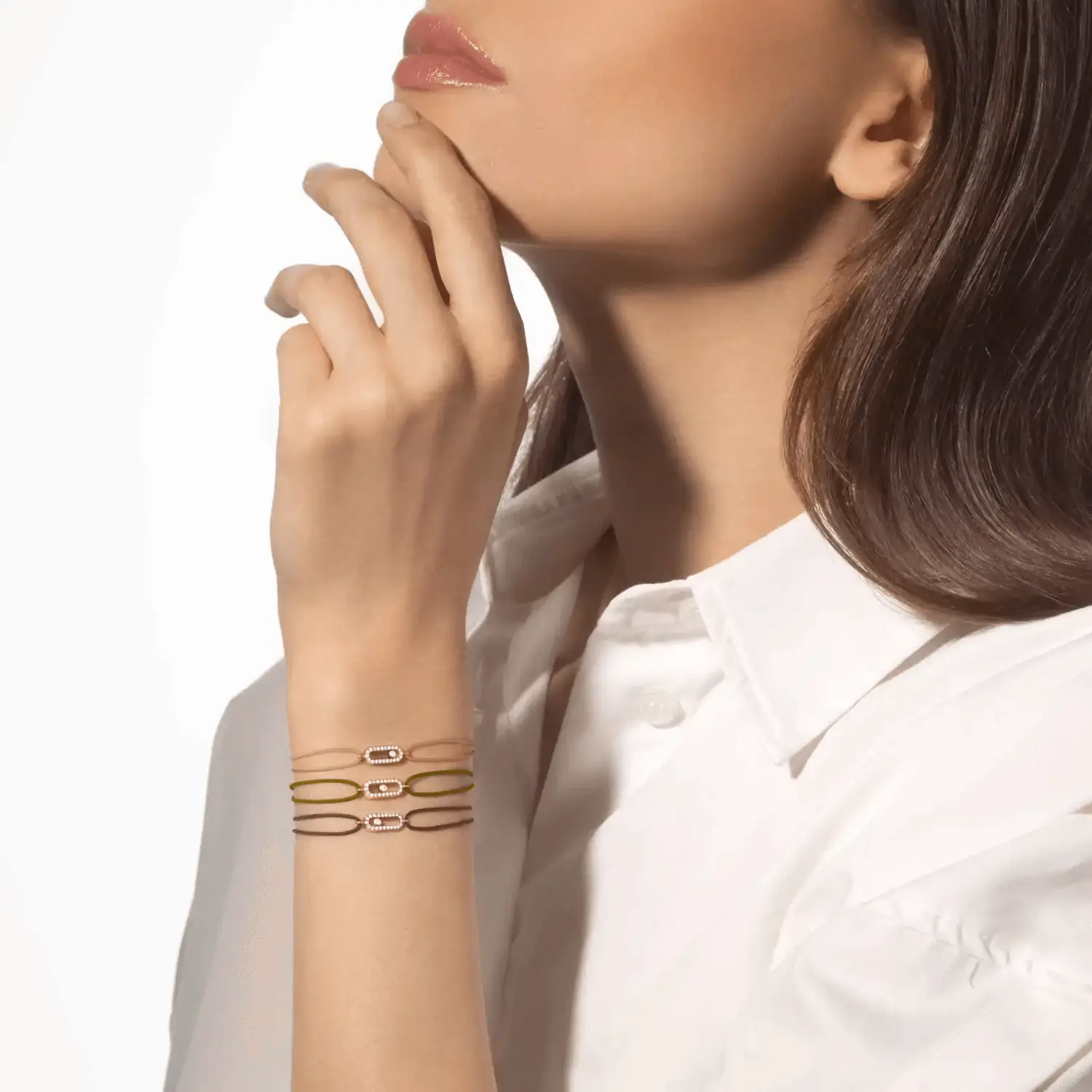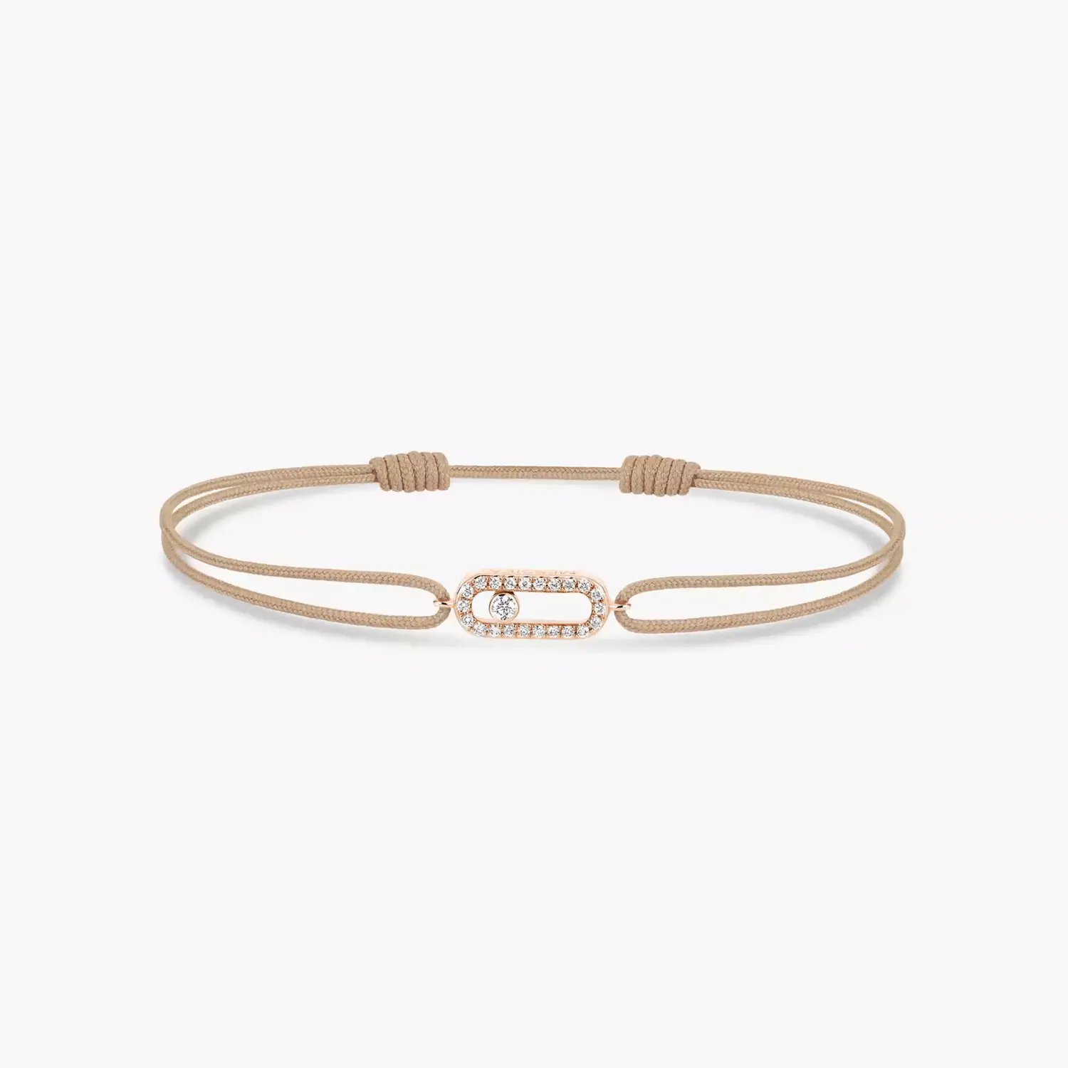 Невероятно элегантные и минималистичные женские украшения! Сияющее женственное розовое золото согревает изысканный браслет из бежевого шнура с бриллиантами. Мотив Move Uno отражает фирменные коды Дома: бриллиант, танцующий в ритме ваших движений, и изысканные, тщательно закрепленные ряды бриллиантов. Этот браслет с бриллиантами подчеркивает запястье и придает повседневным нарядам дополнительный блеск. Для тех, кто ищет роскошное украшение на каждый день.