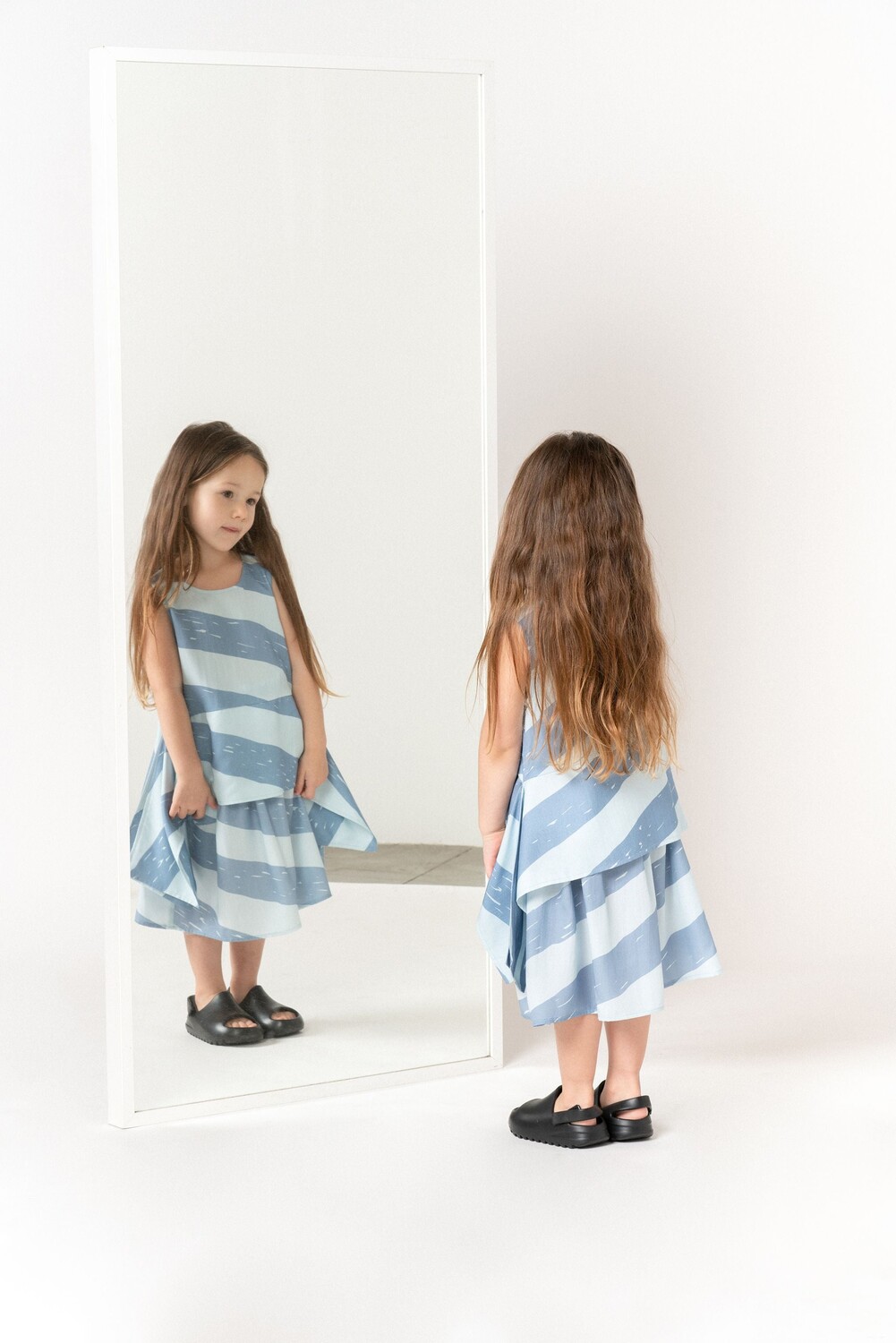 Топ без рукавов с баской для девочек и хвостом по бокам Omamimini, синий