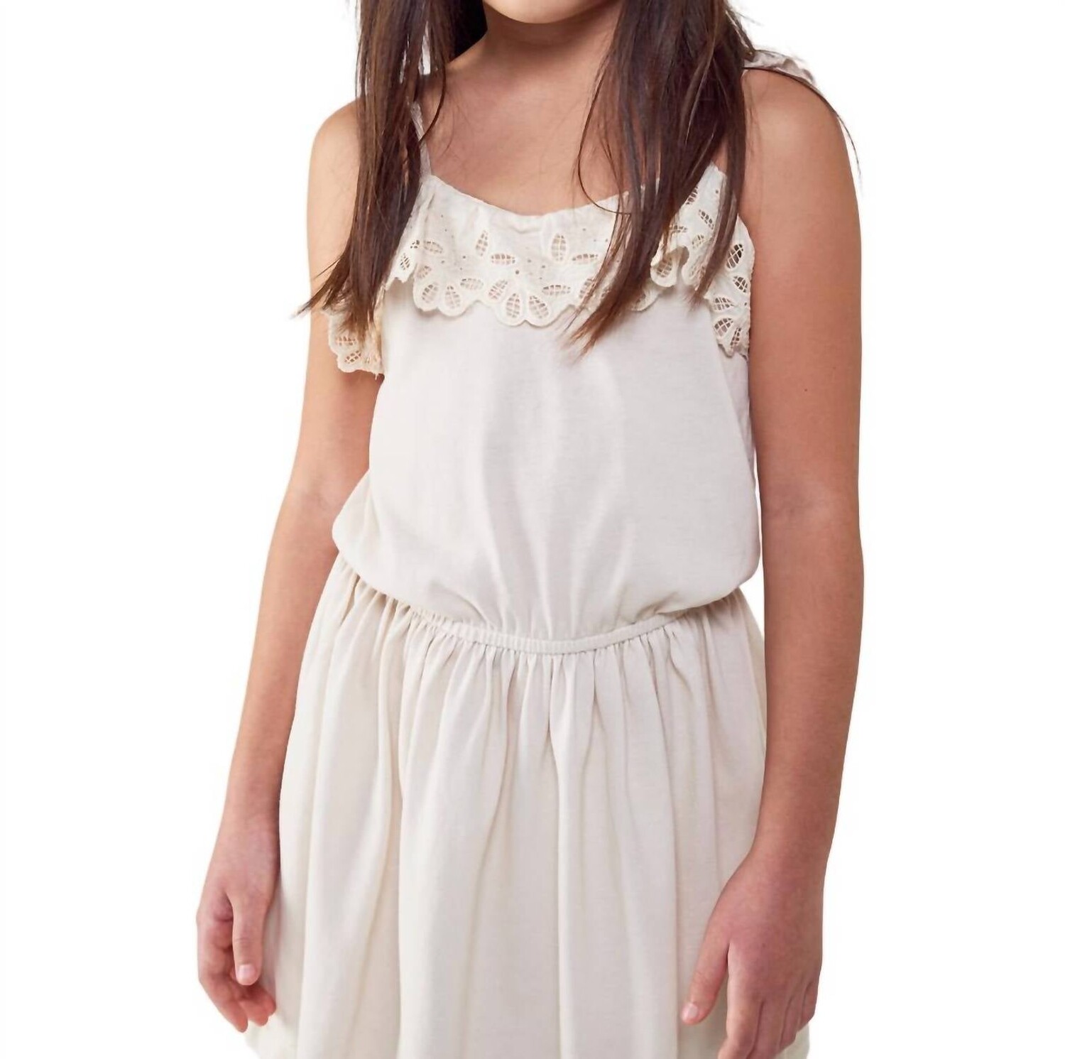 Простое платье средней длины с завязками из натуральной ленты, эластичной талией. 100% Хлопок. Машинная стирка бережная, прохладная. Повесьте сушиться.