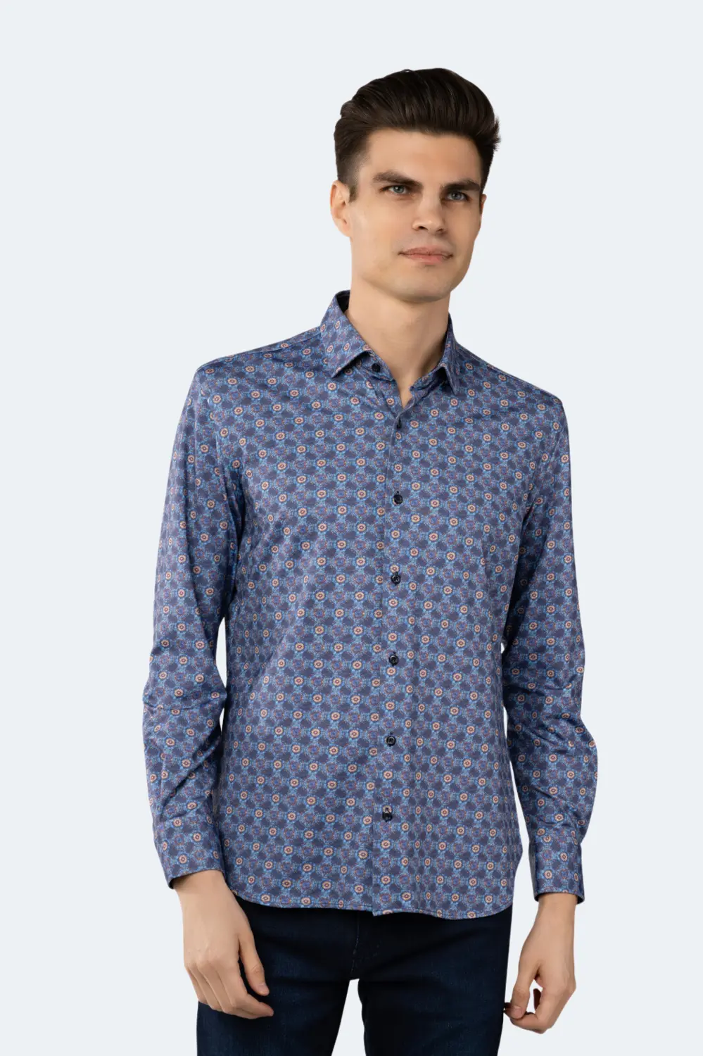 Круглая рубашка Лукьяно Висконти искусно сочетает в себе морской оттенок с королевским темно-синим, солнечно-желтым и белоснежным красивым круглым узором. Эта рубашка идеально подходит для придания изысканности и очарования любому ансамблю. Длинные рукава создают классический силуэт. 95 % полиамид, 5 % EA.