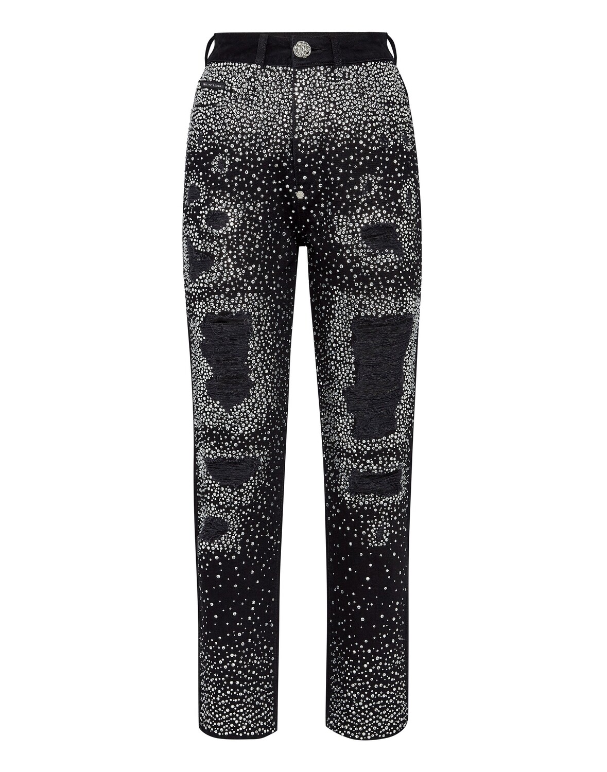 Джинсовые брюки-бойфренды с кристаллами Philipp Plein, цвет Summer Night